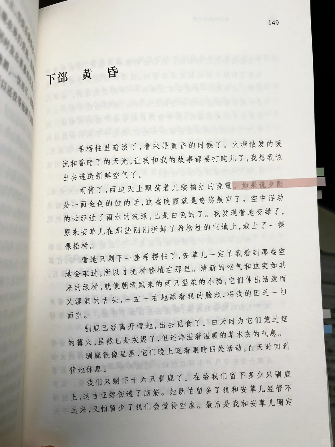 [草莓R]我不愿意睡在看不到星星的屋子里,我这辈子是伴着星星度过黑夜的。如果午夜梦醒时我望见的是漆黑的屋顶,我的眼睛会瞎的;我的驯鹿没有犯罪,我也不想看到它们蹲进“监狱”。听不到那流水一样的鹿铃声,我一定会耳聋的;我的腿脚习惯了坑坑洼洼的山路,如果让我每天走在城镇平坦的小路上,它们一定会疲软的再也负载不起我的身躯,使我成为一个瘫子;我一直呼吸着山野清新的空气,如果让我去闻布苏汽车放出的那些“臭屁”,我一定就不会喘气了。我的身体是神灵给予的,我要在山里,把它还给神灵。