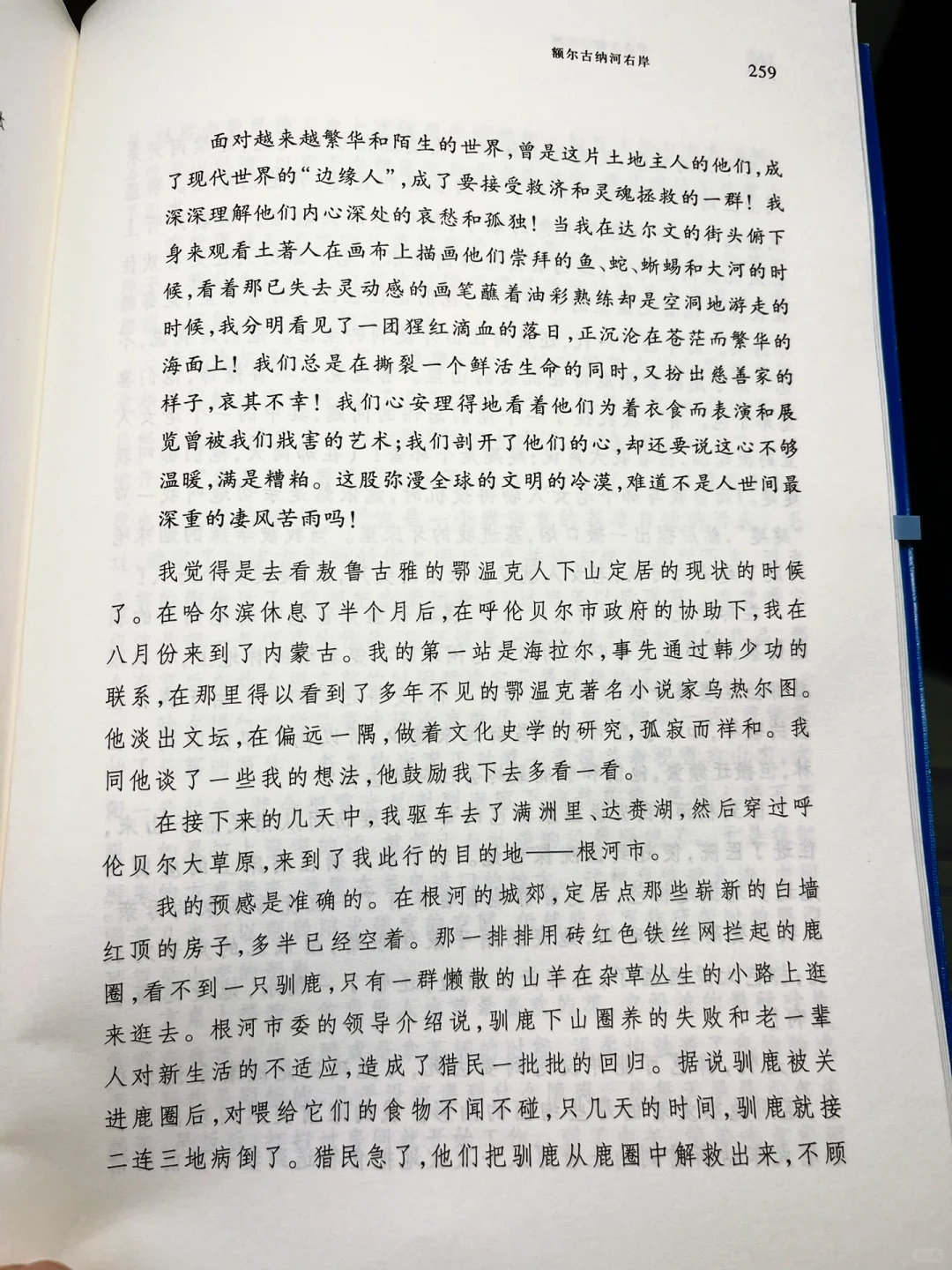 *小说描写了生活在额尔古纳河右岸的鄂温克族人的生活、爱情、命运和他们的悲欢离合。他们以狩猎为生,与热爱的山林、河流、驯鹿同呼吸,共命运。