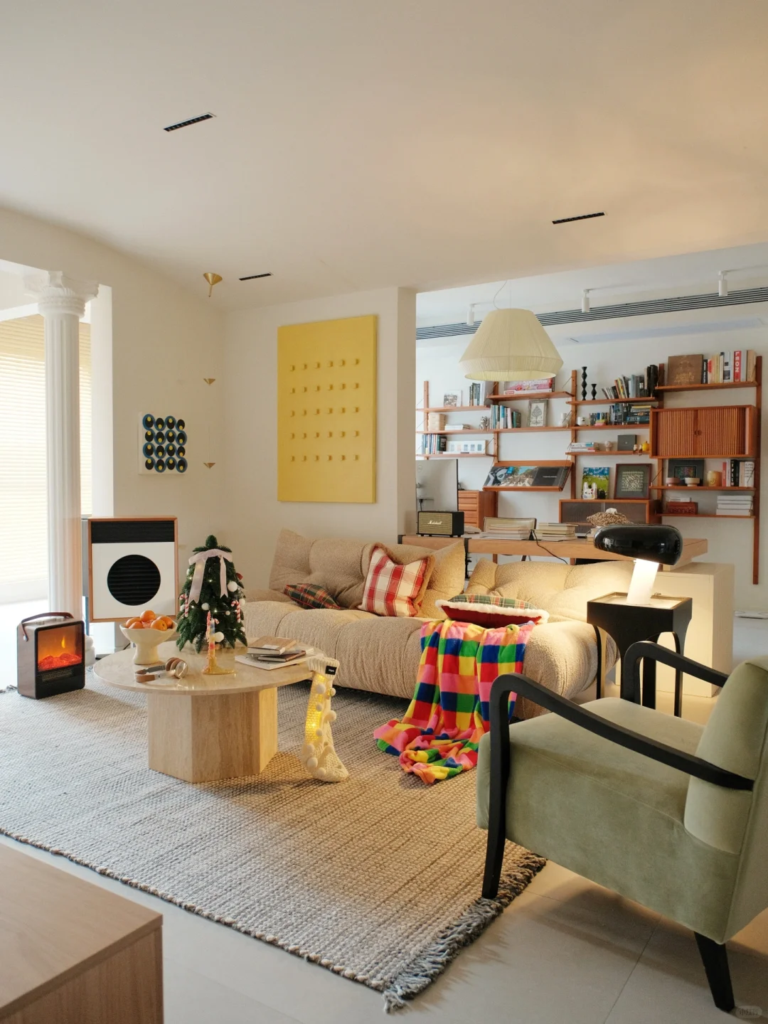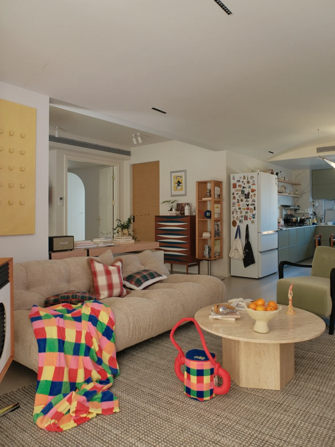 5️⃣浅灰色瓷砖通铺,延伸感更强,🛋️搭配了偏浅色的沙发和地毯,就不会觉得单调啦