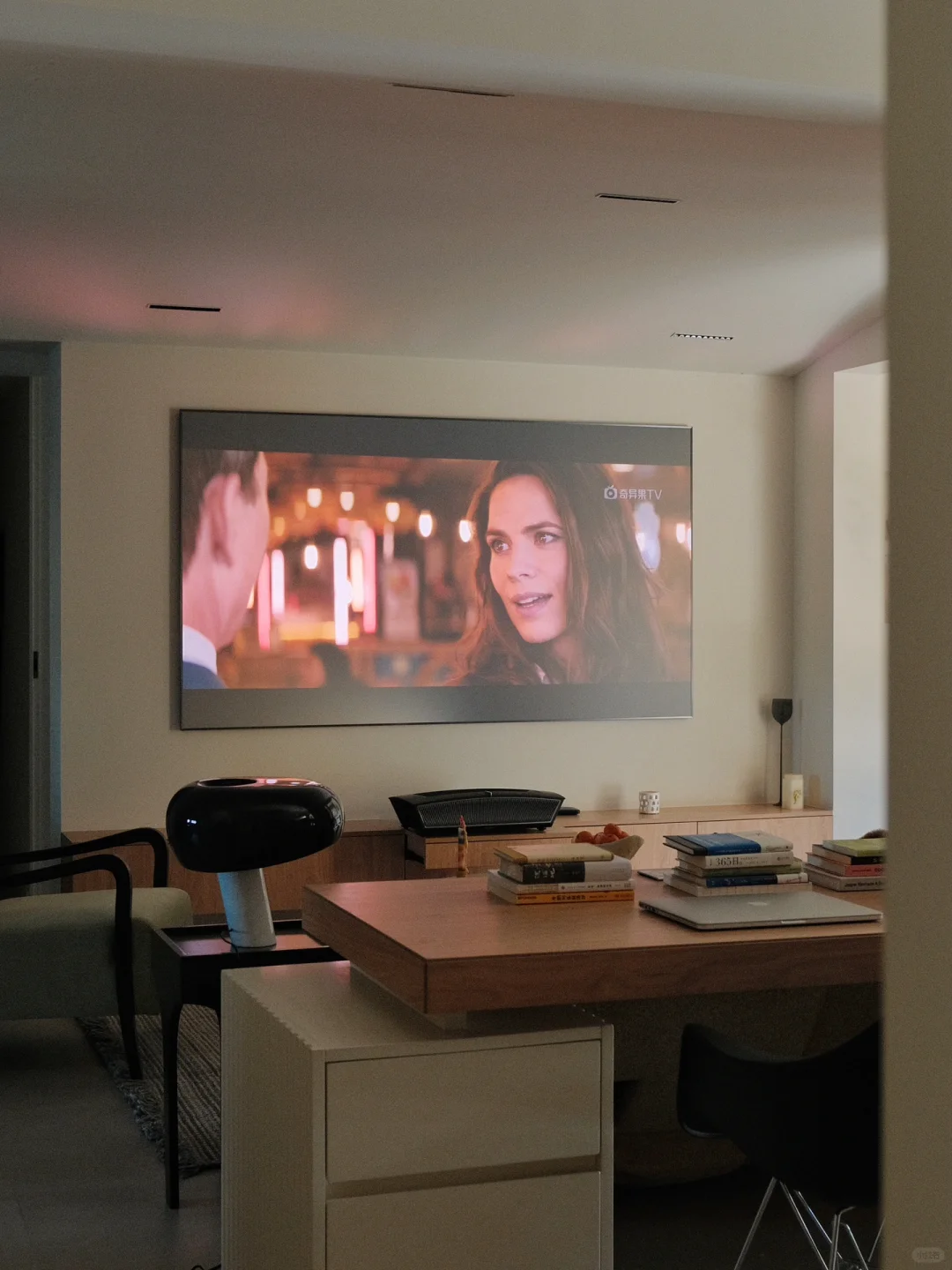 我家是在京东入手的中科极光激光电视,无需走线,主机一根线搞定,👀采用三色真激光国产完全自主技术,6D空间光重构,画质清晰自然,屏幕是不通电的没有电磁辐射,看久了也不累眼睛;还有人眼保护传感器,👶🏻有宝宝的家庭也不用担心伤眼睛了; 与投影幕布不相同的是屏显高度 400nit,白天自然光或者晚上开灯观影都不受影响