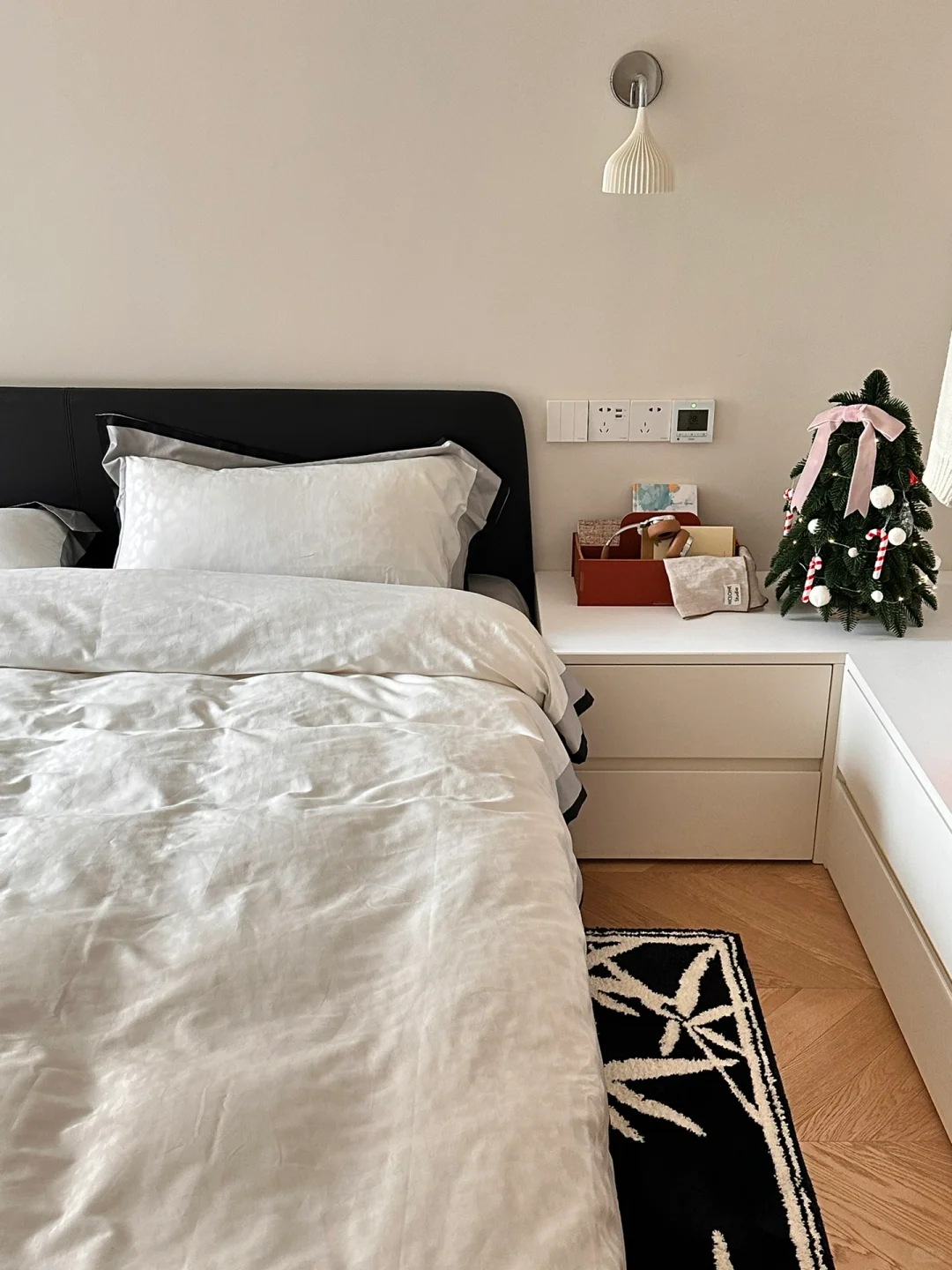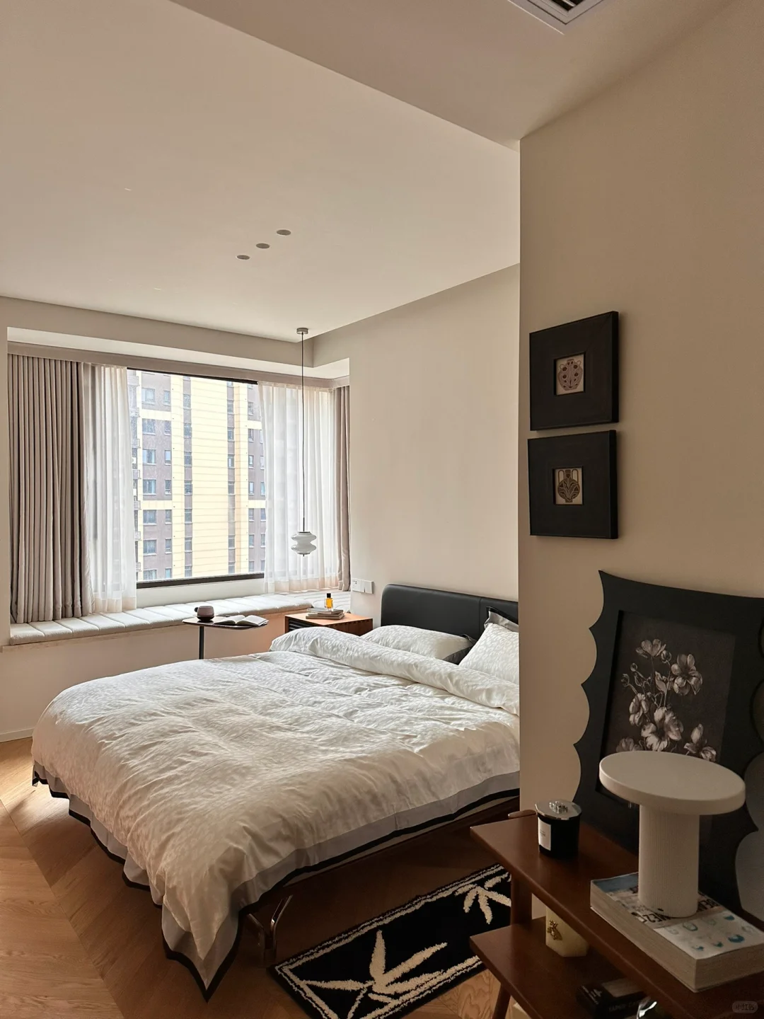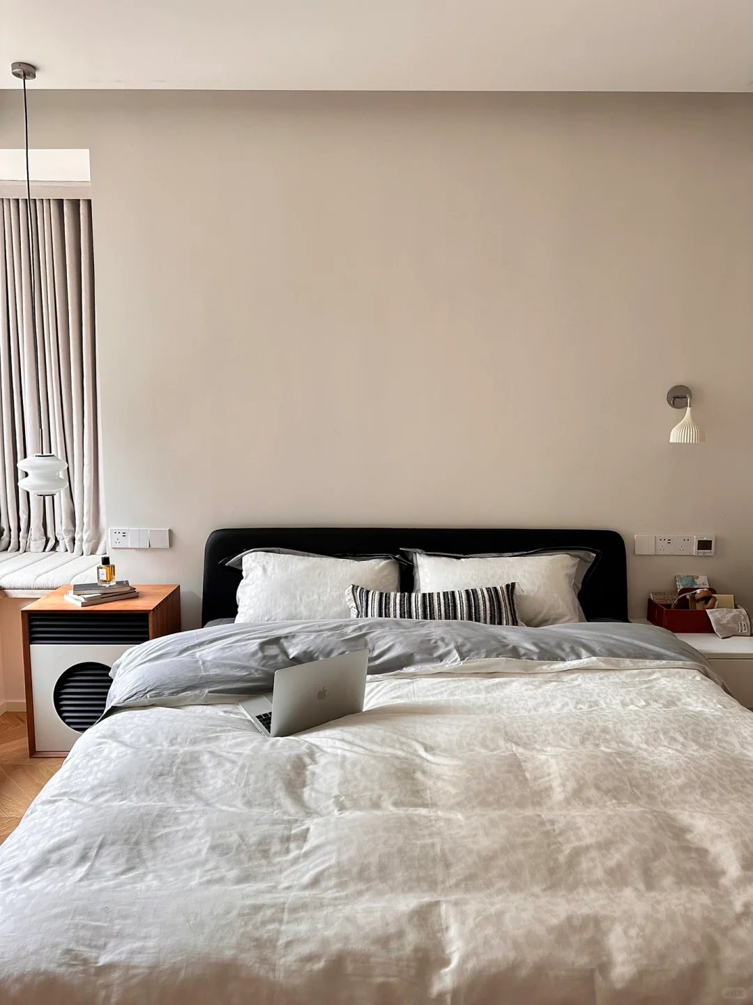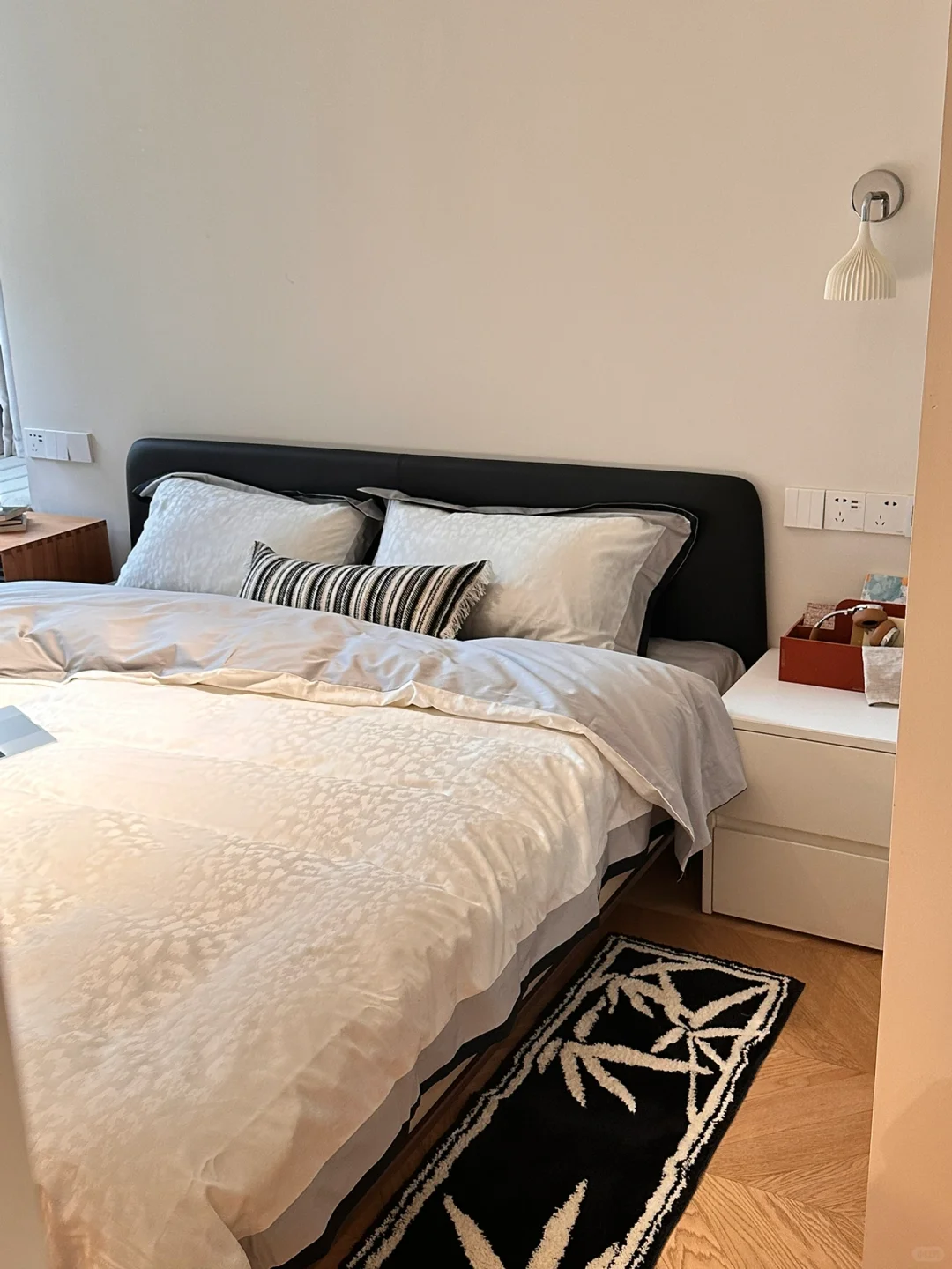 ☑️我家卧室整体都是⚫️⚪️🟤配色,大白墙搭配黑色床🛏️的撞色也很简约高级