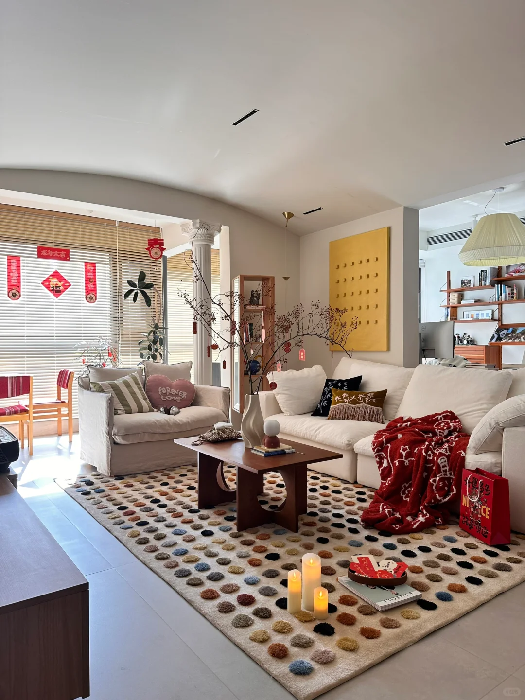 不知不觉 分享我的家一年半啦 建面170平的小家 被我打造成折衷主义的风格 阳光很好的一天 提前买了些喜庆的小装饰~ 一些简单不落俗的设计适当的点缀 红红火火、喜喜庆庆,有点那味了 新年氛围感,咱们先拿捏住了🤏 一张舒服的沙发,一本书 柔软且恰到好处的包裹感 可以窝一整天 自由,随心 认真对待生活,生活会给你正反馈 分享给大家~新一年一起更好!