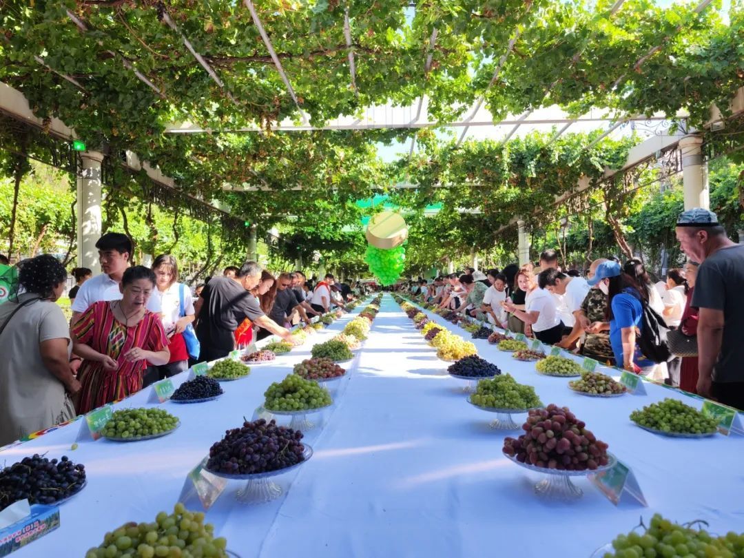 第三十届中国丝绸之路吐鲁番葡萄节现场,展示了220种吐鲁番本地葡萄。