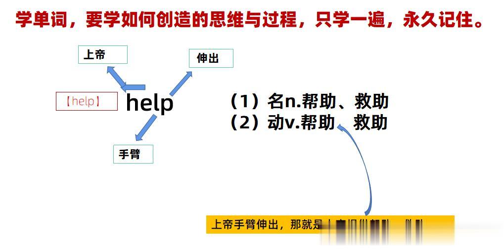 当你学清楚“he”后,你就会发现she、her、hen、help、hero等单词一定是这样写,如果从快速角度来说,英语也有类似我们汉语的快速记词现象,只是他们的文字“斩杀线”不让我们普通大众知道而已!