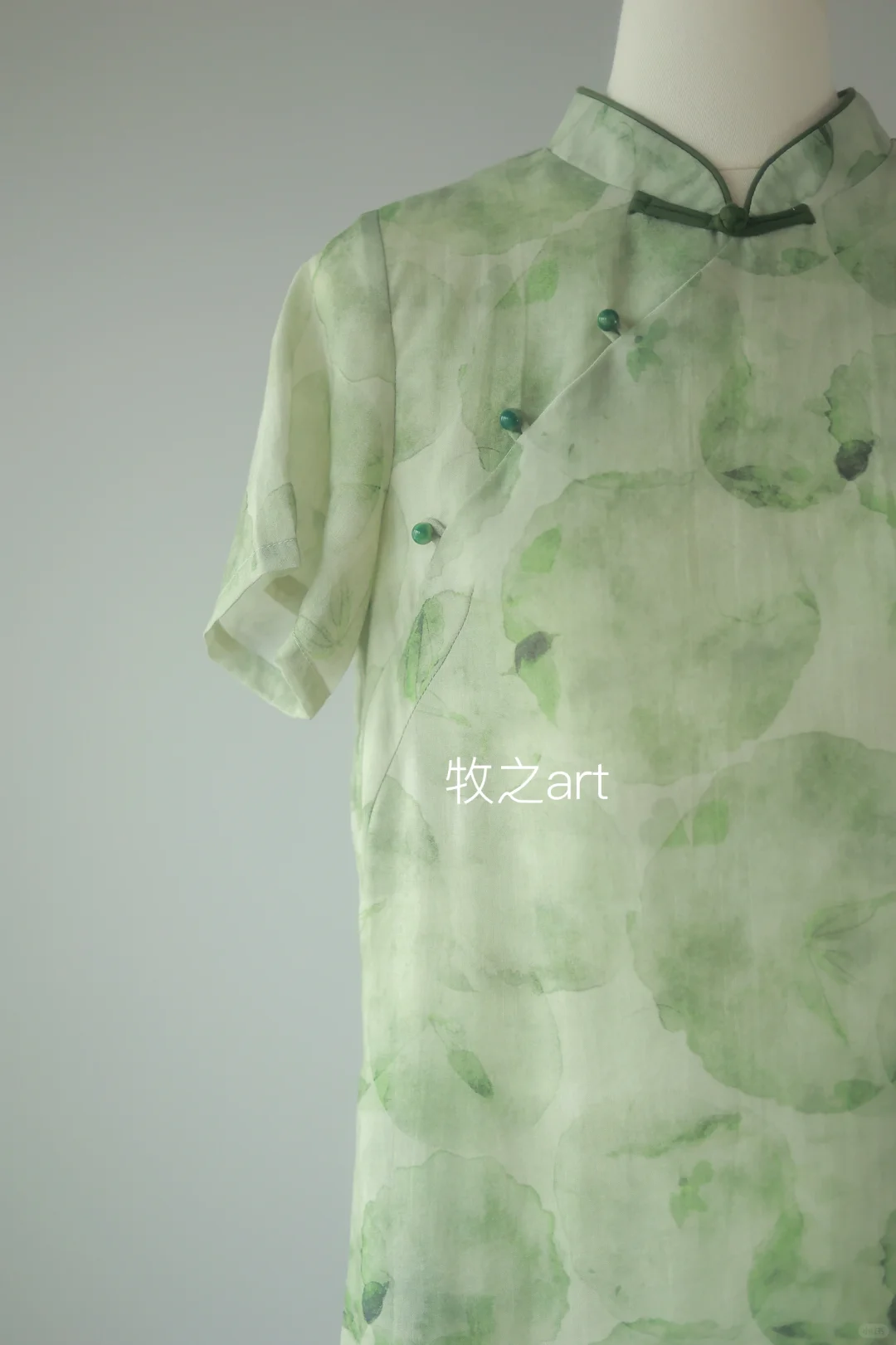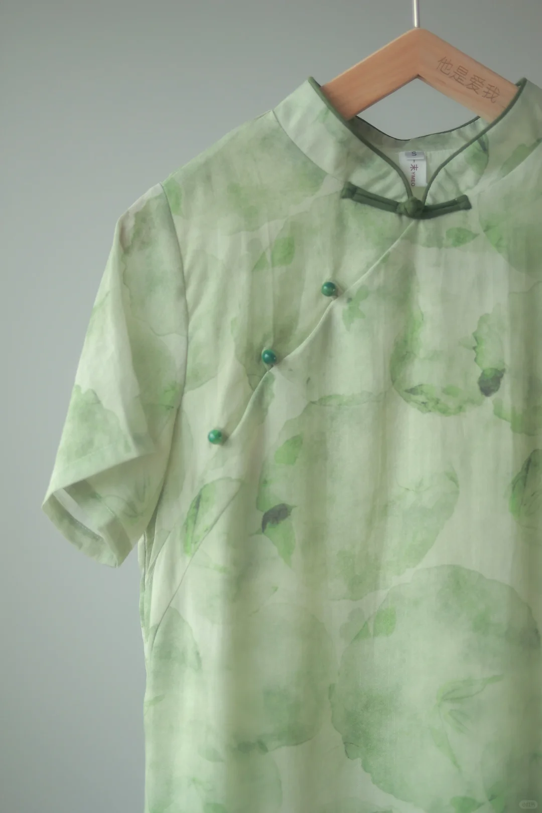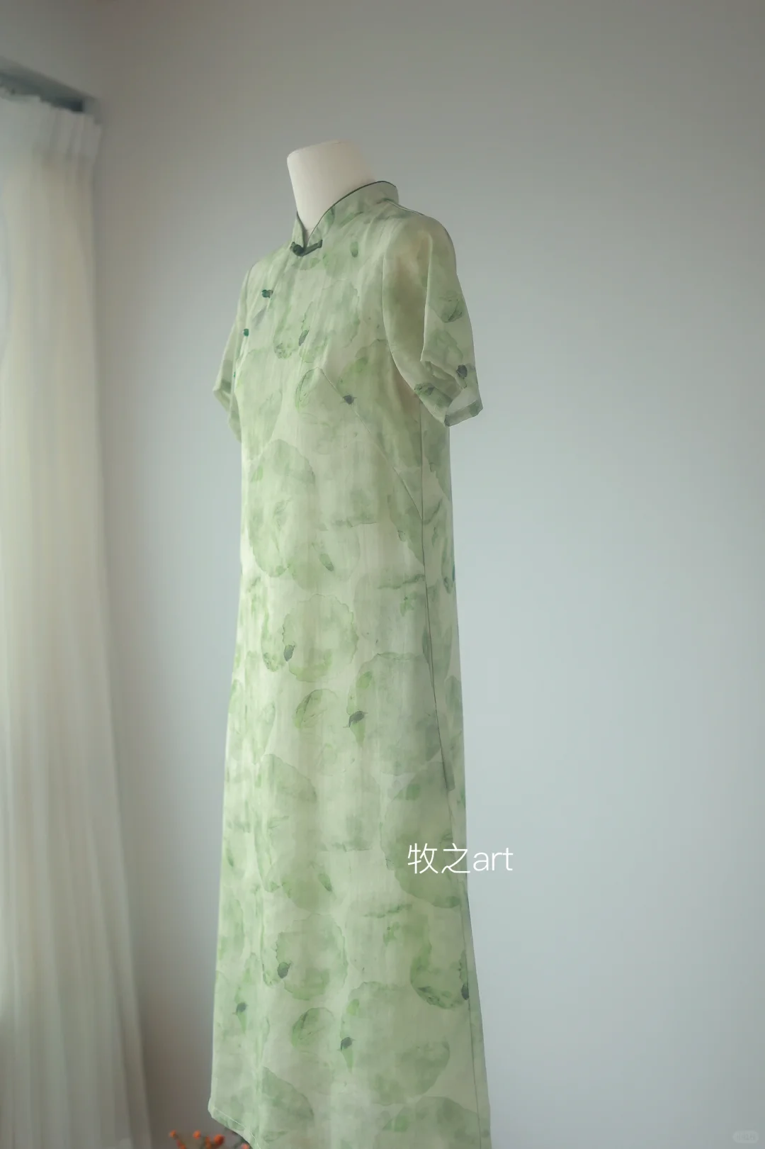 花色淡雅,青绿色晕染 是藏在衣服里的诗情画意 底色是浅浅的豆绿 比较清爽 苎麻面料透气性好 易皱也易平,轻巧透气但有质感 可以尝试用小水壶喷在衣服上,用手抹平褶皱,只有天然面料才有的特性~ 对年龄和身材要求不高 都能穿出不同的韵味 4️⃣码,两侧有口袋,并且是有内衬的,直接亲肤穿就可以 -