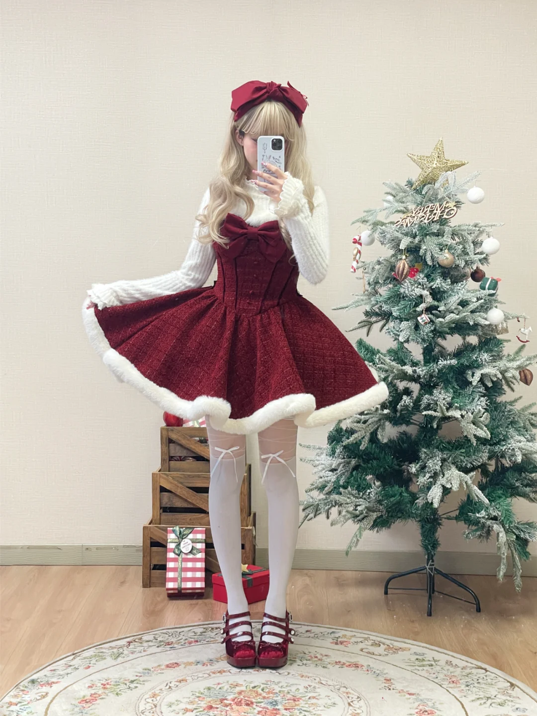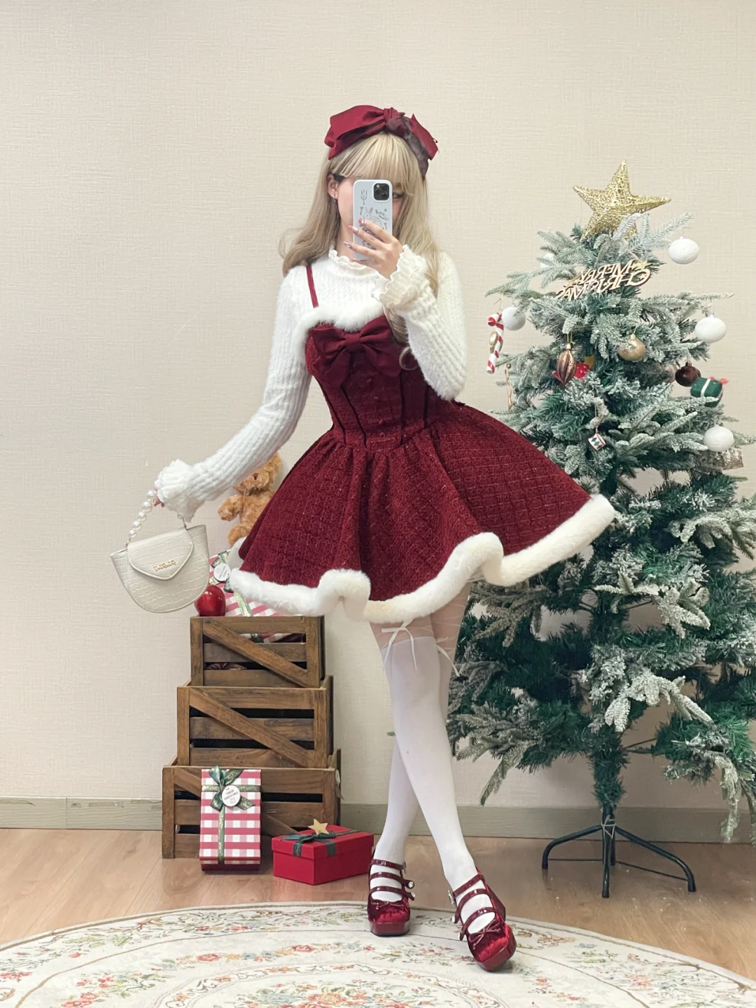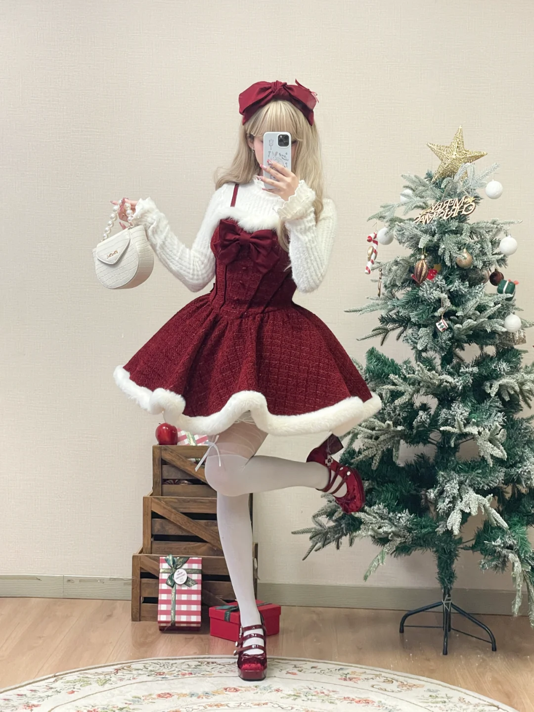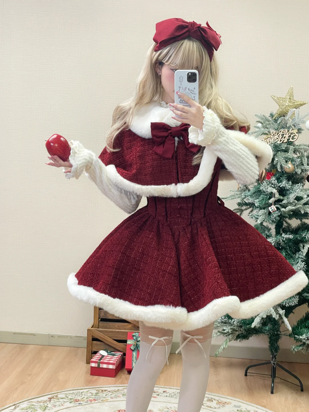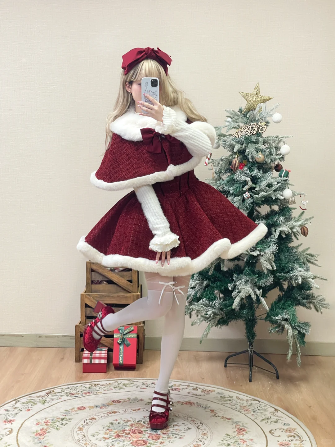 🌈红色尊滴好有圣诞节氛围感!裙裙这个腰身掐的也太好了,谁懂呀没有鱼骨完全不担心被扎,纯纯靠版型和挺括的面料来打造出的收腰效果,斗篷和后背大蝴蝶结🎀完全就是公主的标配啦~