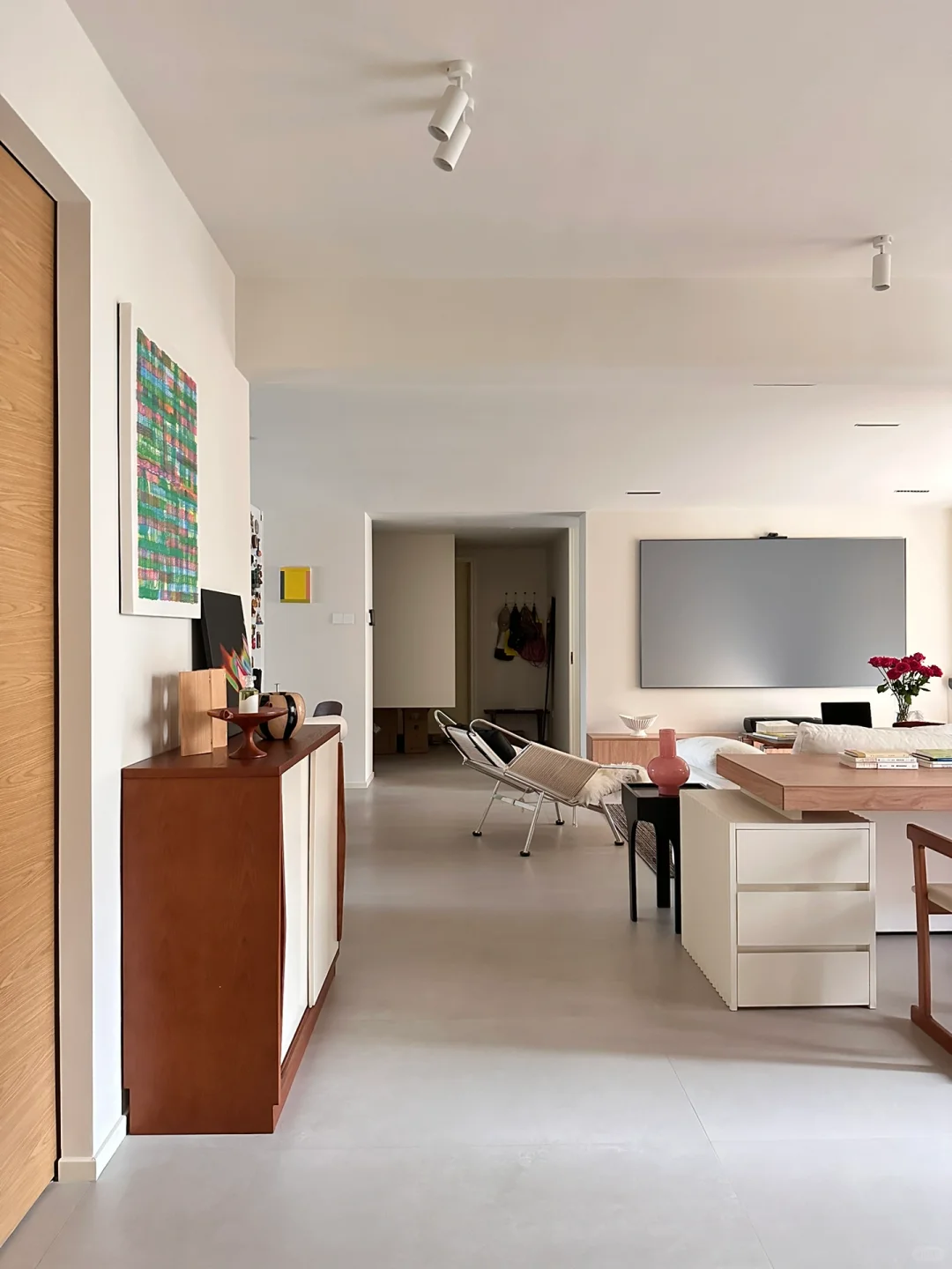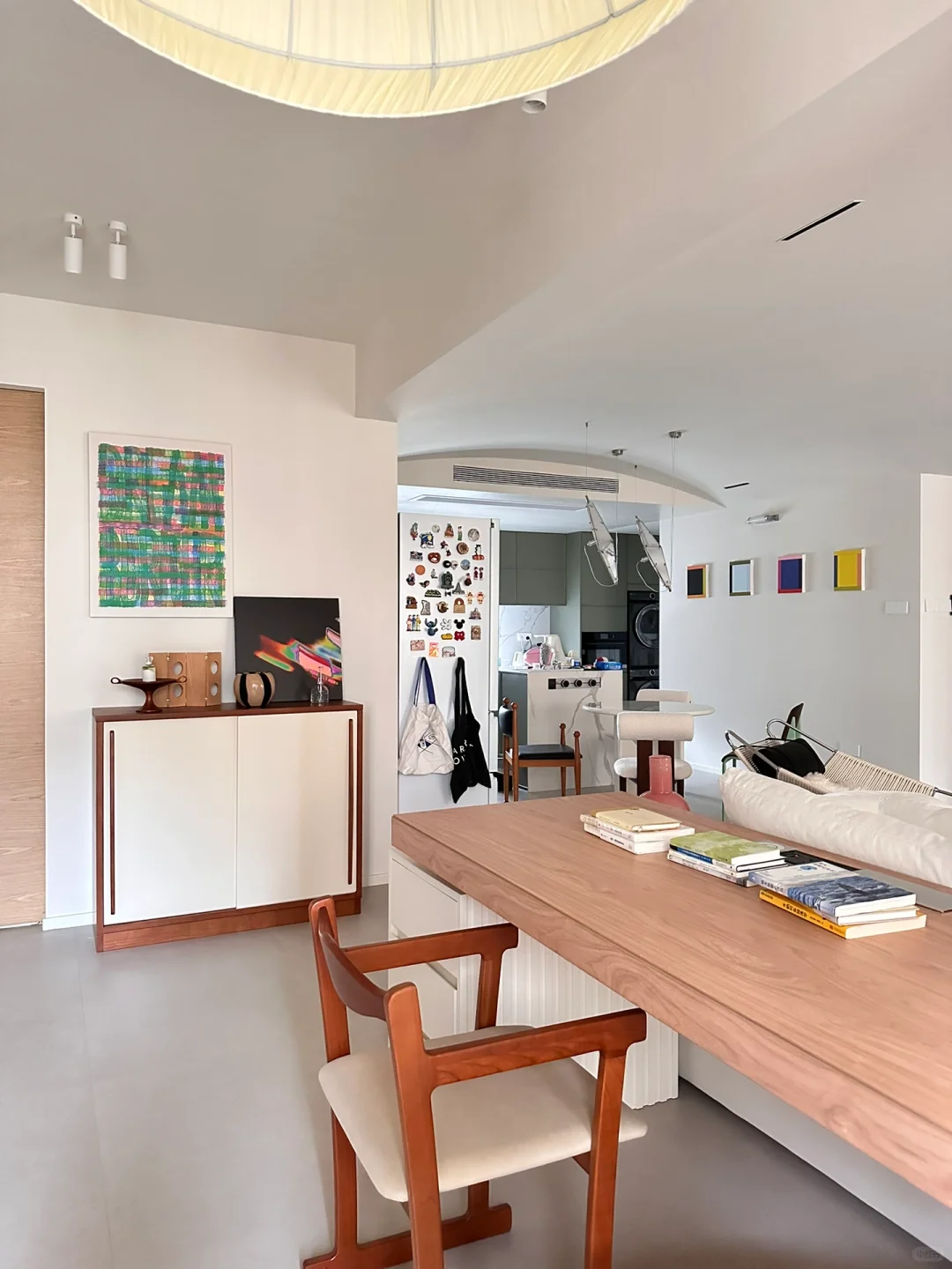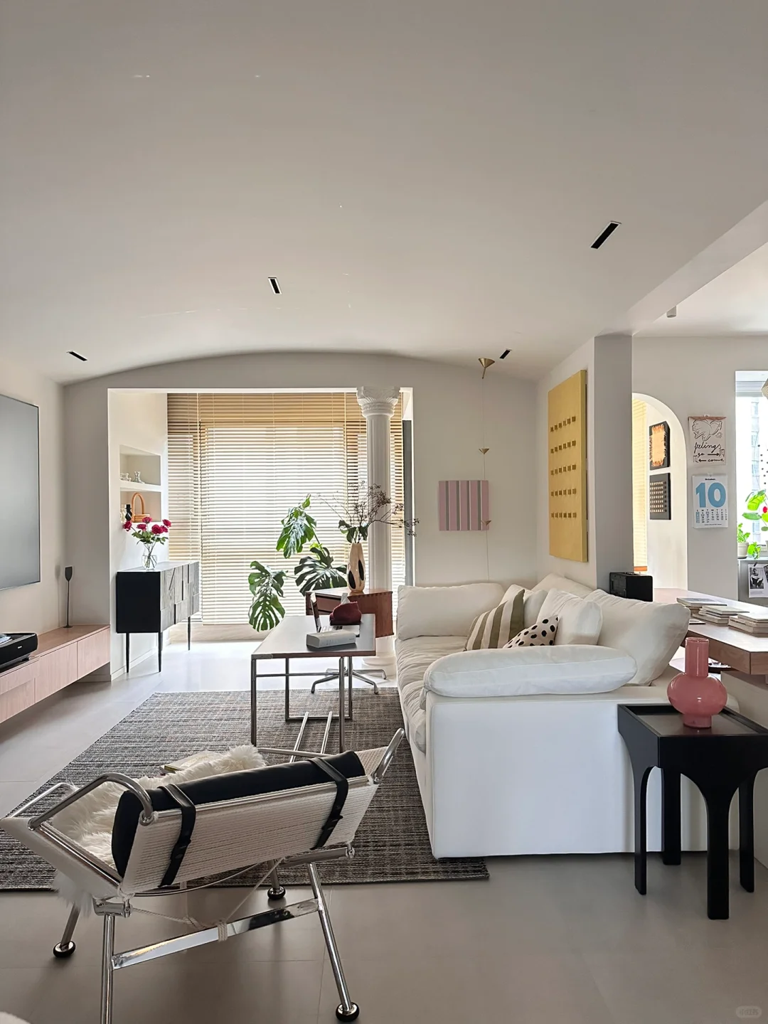 哈喽 我是大芸 我家🏠套内140平 四房改三房 砸掉一面墙使开放式书房+客餐厅一体阳台包进客厅 采光更好的同时空间也大了不少 我家的主要配色是⚪️🟤⚫️ 所有的家具都往这三个颜色集中 近期爆火的美拉德风说的正是棕色 具有天然的复古调调 基于这样的配色法 🛋️软装家具尽可能呼应起来 即便没有装饰,氛围都能扑面而来~ 因为爱折腾 所以我也喜欢多变的组合家具 换一换又有新鲜感了 虽然整个装修过程虽然花了不少心思 但当完成的一瞬间,🎈可太有成就感啦~ 秋天🍁的气息越发浓烈 在自己创造的氛围中治愈自己