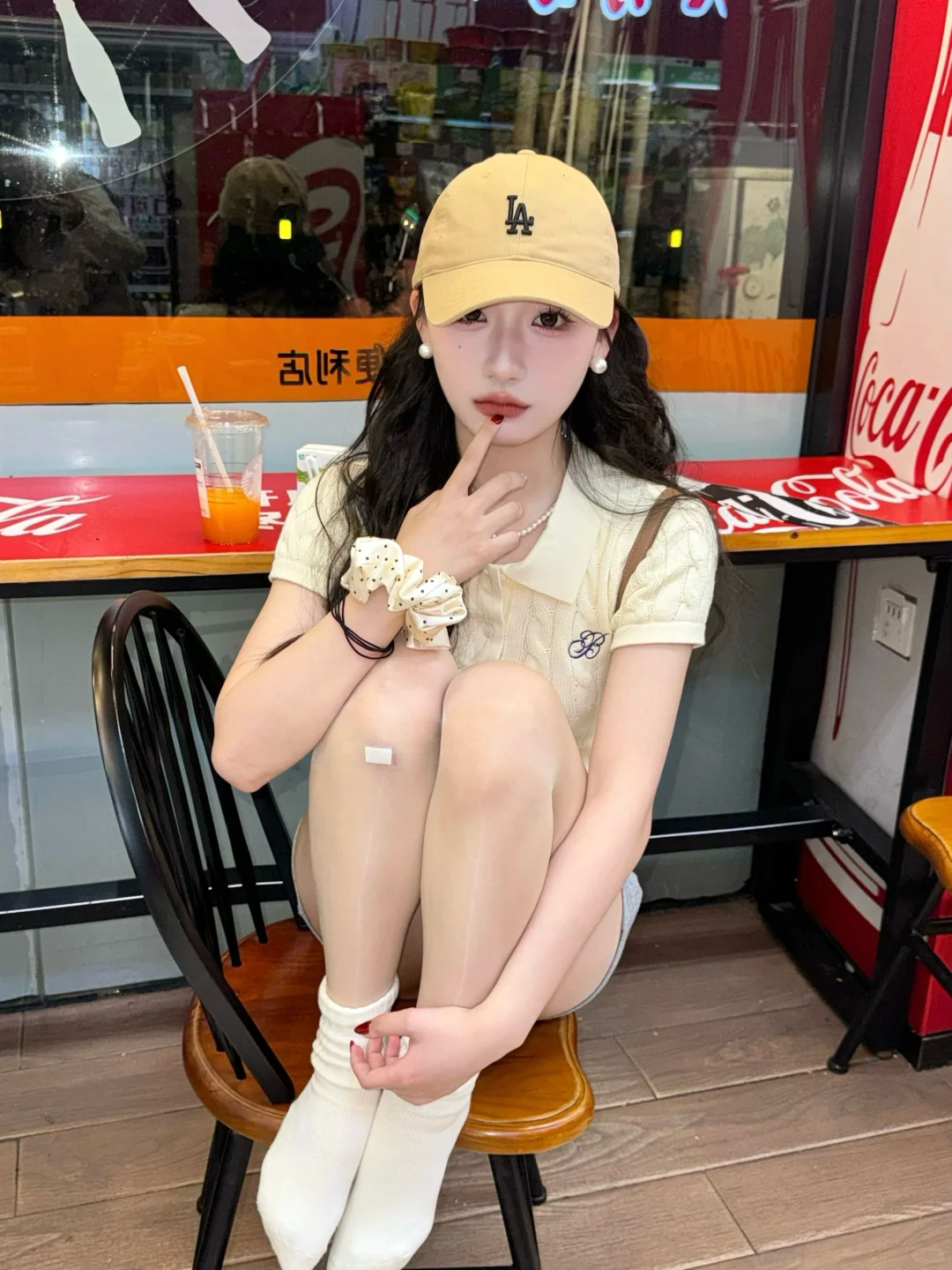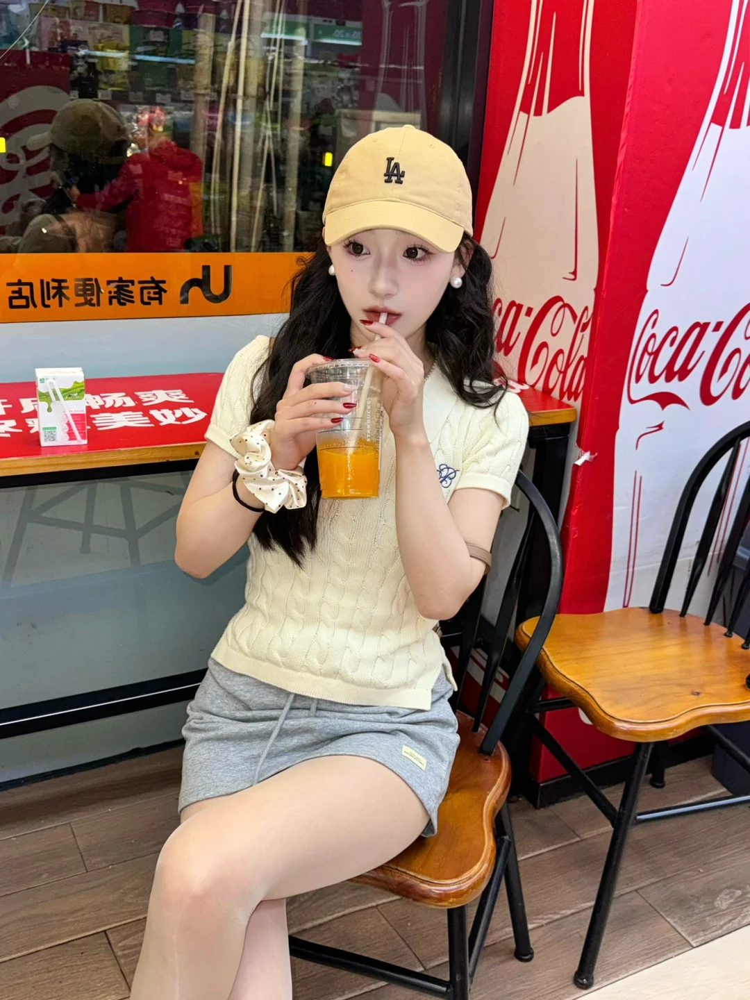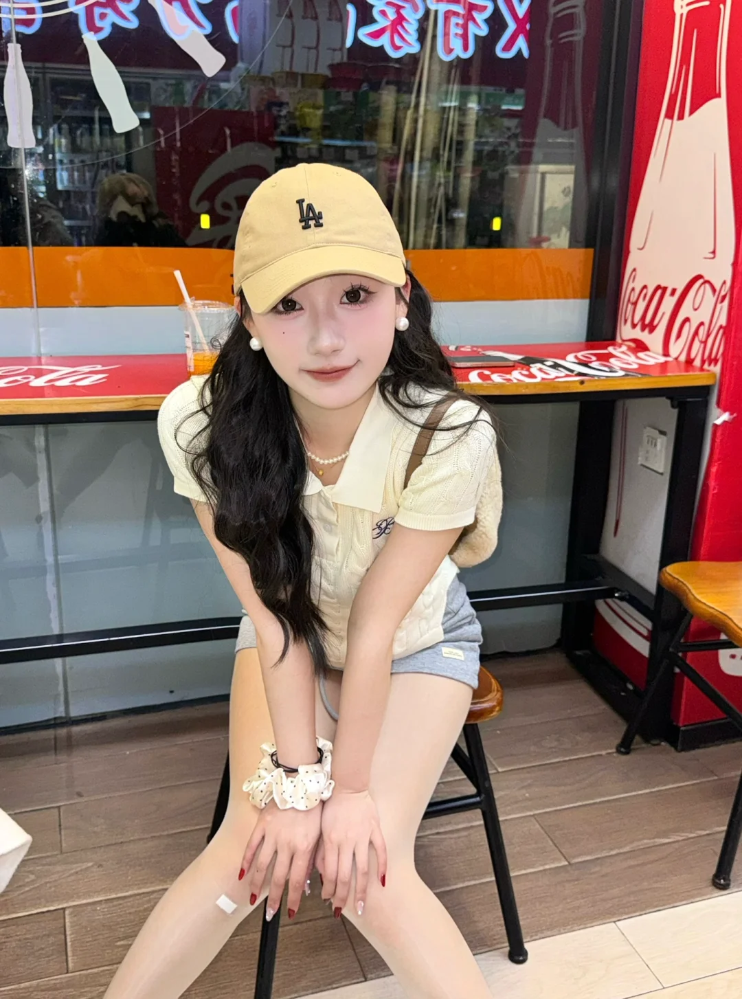 白色polo针织+灰色运动短裙+鸭舌帽 还能这么元气啊啊啊 还有那么点纯欲的感觉