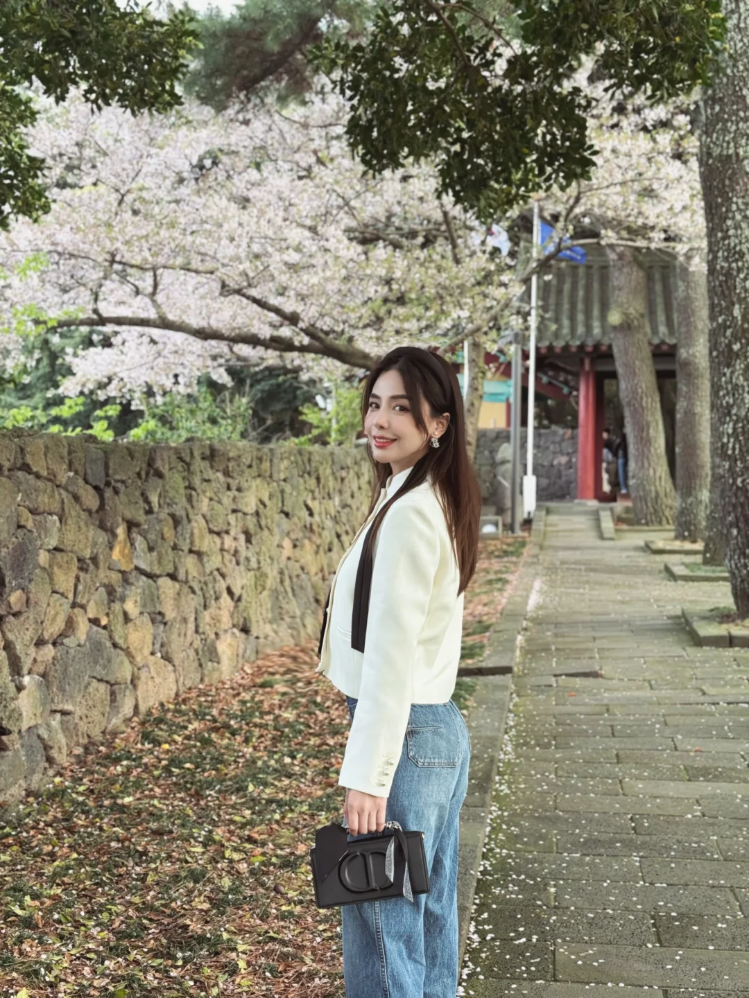 赏樱 樱花季 一日游 济州岛樱花 三姓穴 时髦穿搭
