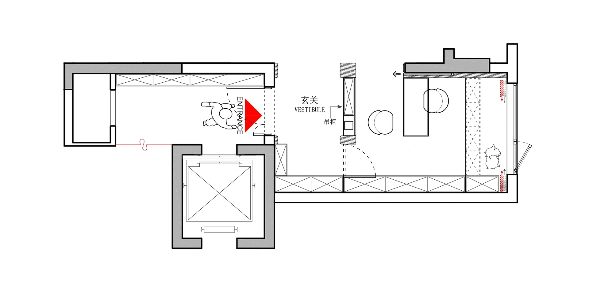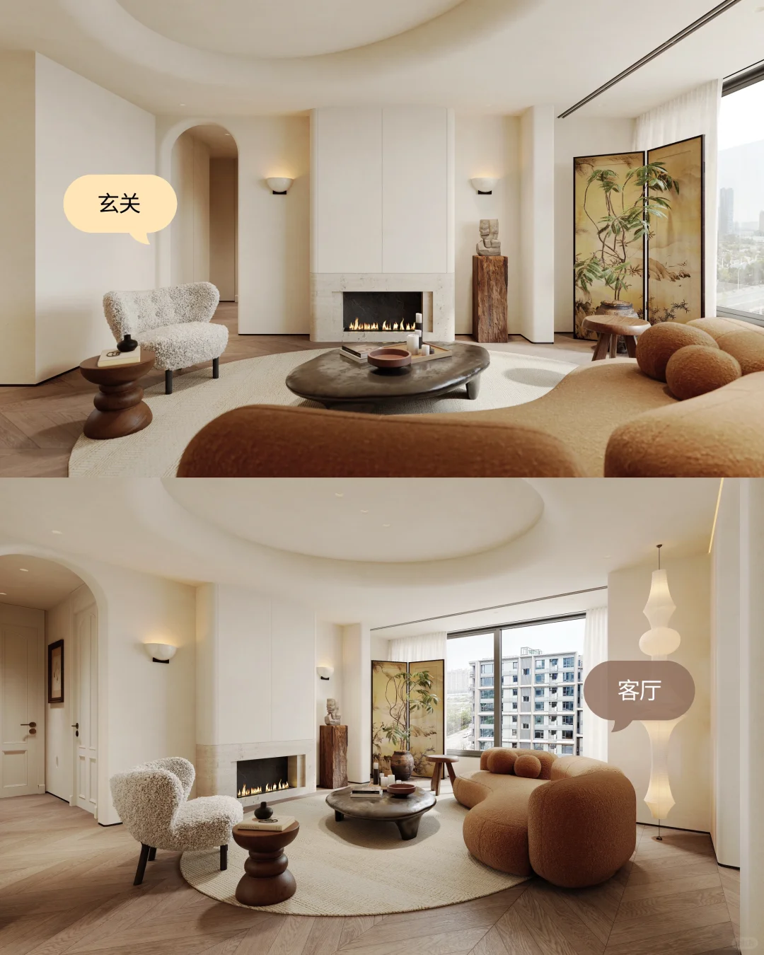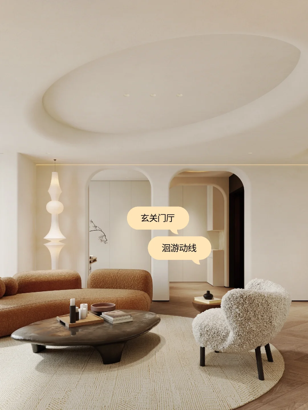 本案为小户型设计,业主热爱自由散漫的艺术生活气息,在家居生活中不爱锋利的边界感,我们模糊家里的空间边界,将各个空间融合串联。