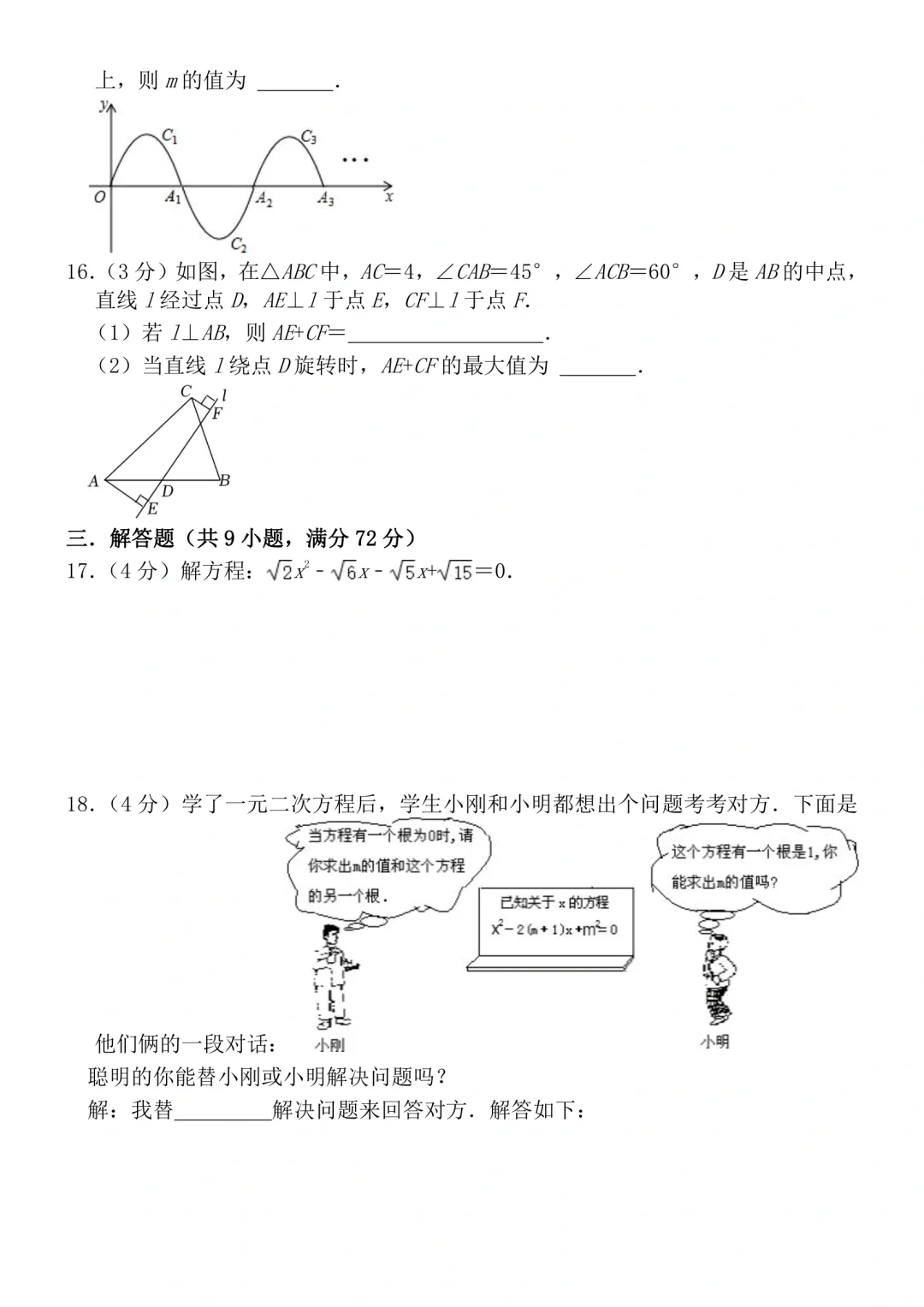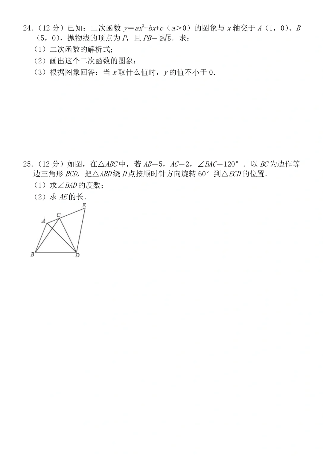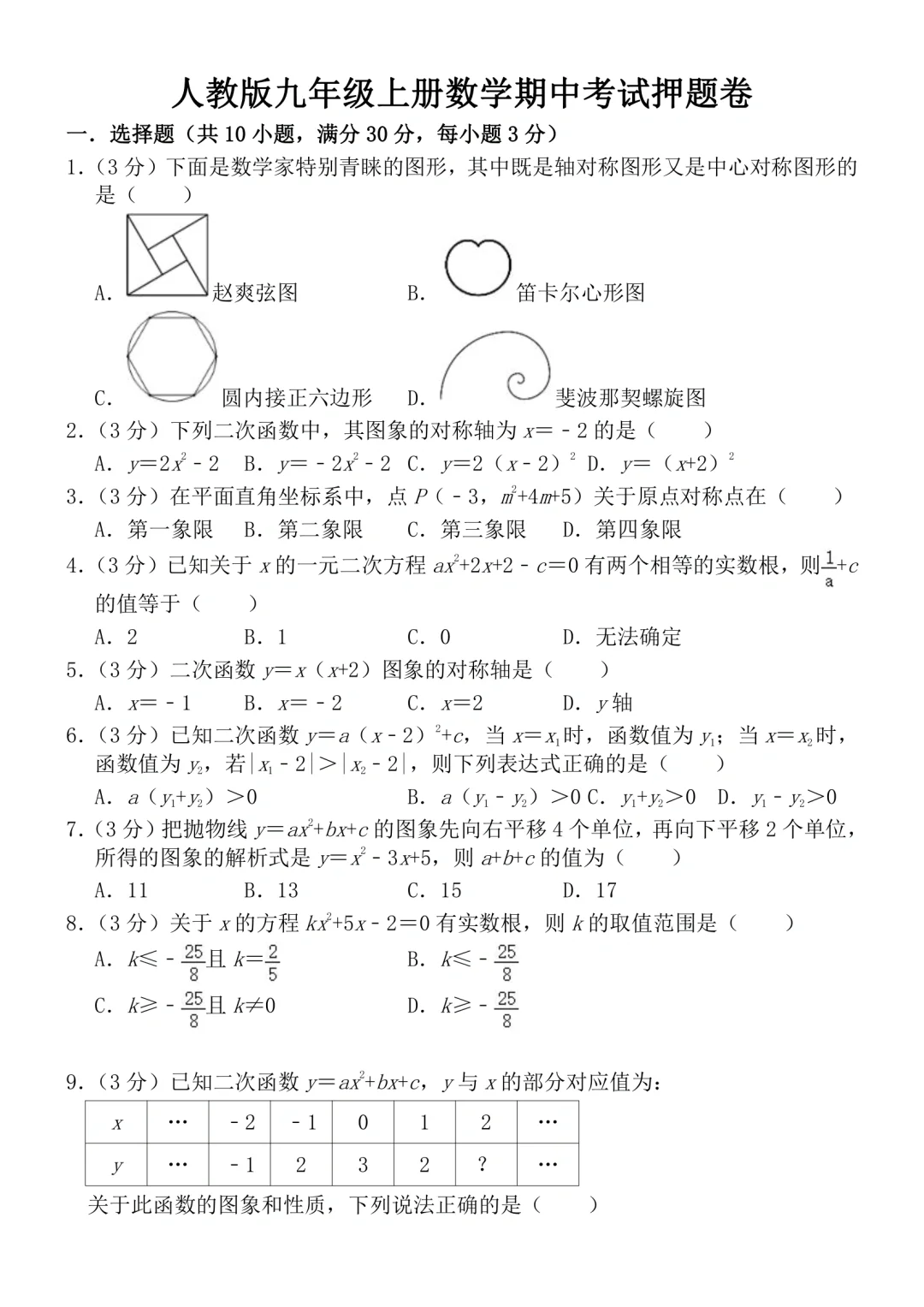 初三九年级上册数学期中考试押题卷.打印出来给孩子学习吧