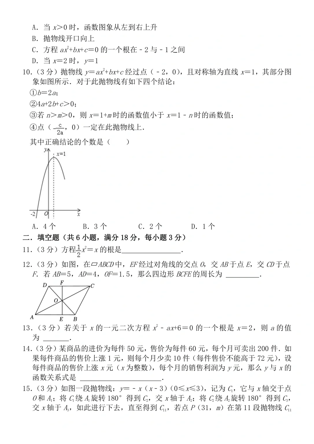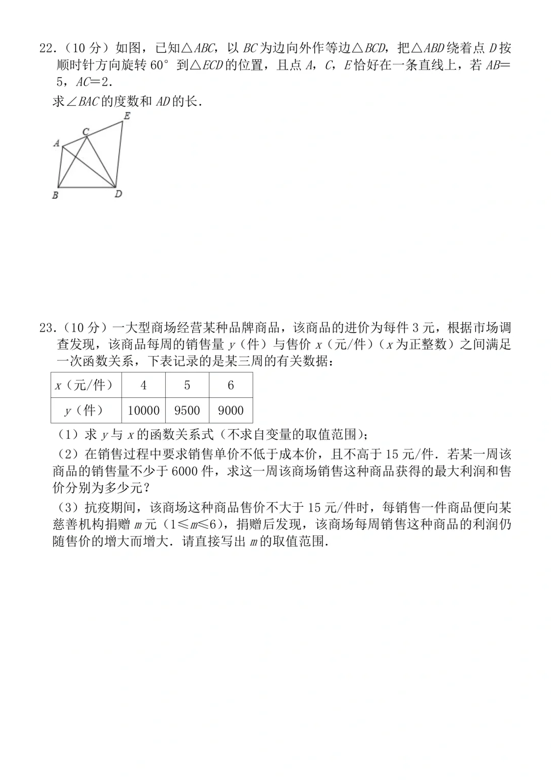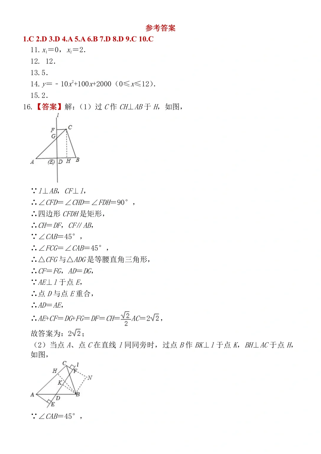 初三九年级上册数学期中考试押题卷.打印出来给孩子学习吧