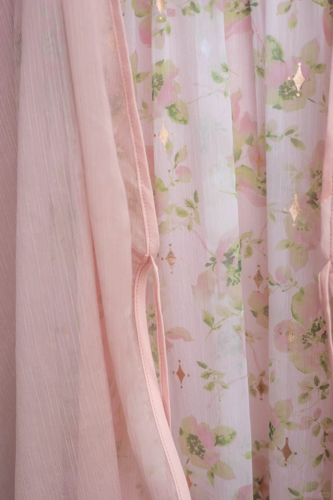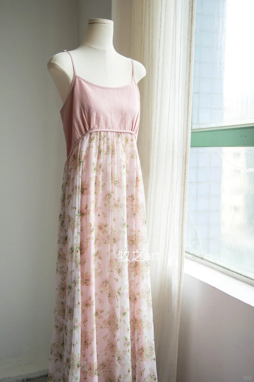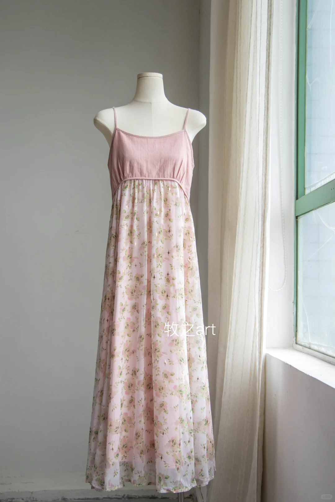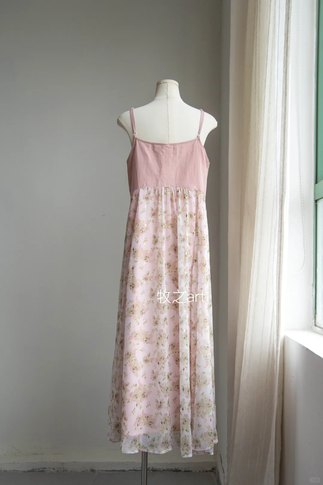 可以开出花的大摆裙 这款面料真的是很特别,偏温柔的底色调➕印花晕染+烫金工艺,温柔仙气,显白显气质 烫金工艺在阳光照射下,bulingbuling~美极啦 吊带裙就是要用料超足的大裙摆才够仙气吖 第一层真丝皱面料是真丝皱,非常轻盈 风吹过来裙摆飘扬,非常灵动 手臂上有肉肉,可以搭配同色系或米杏色外披,都很绝绝子好搭。 -