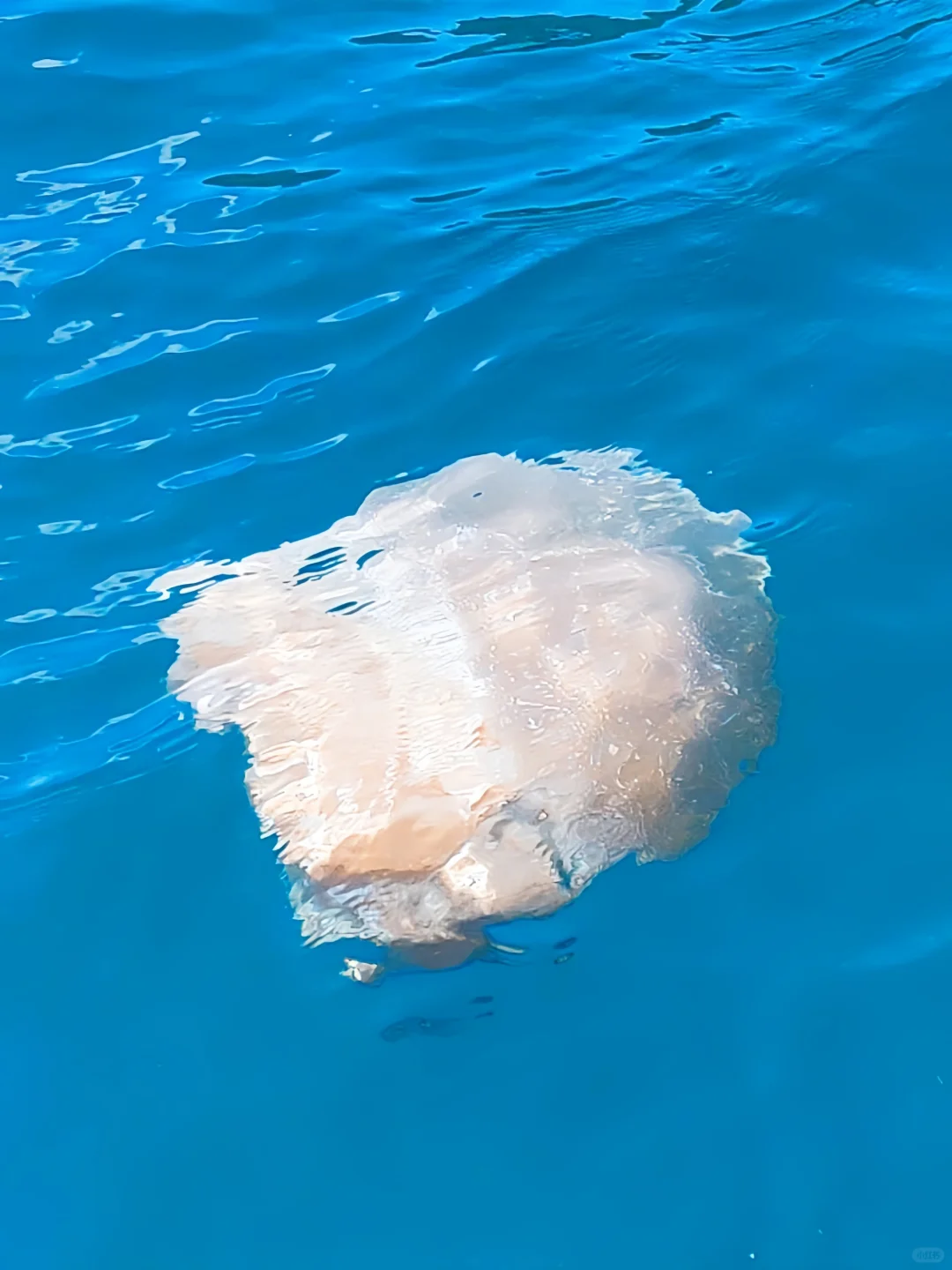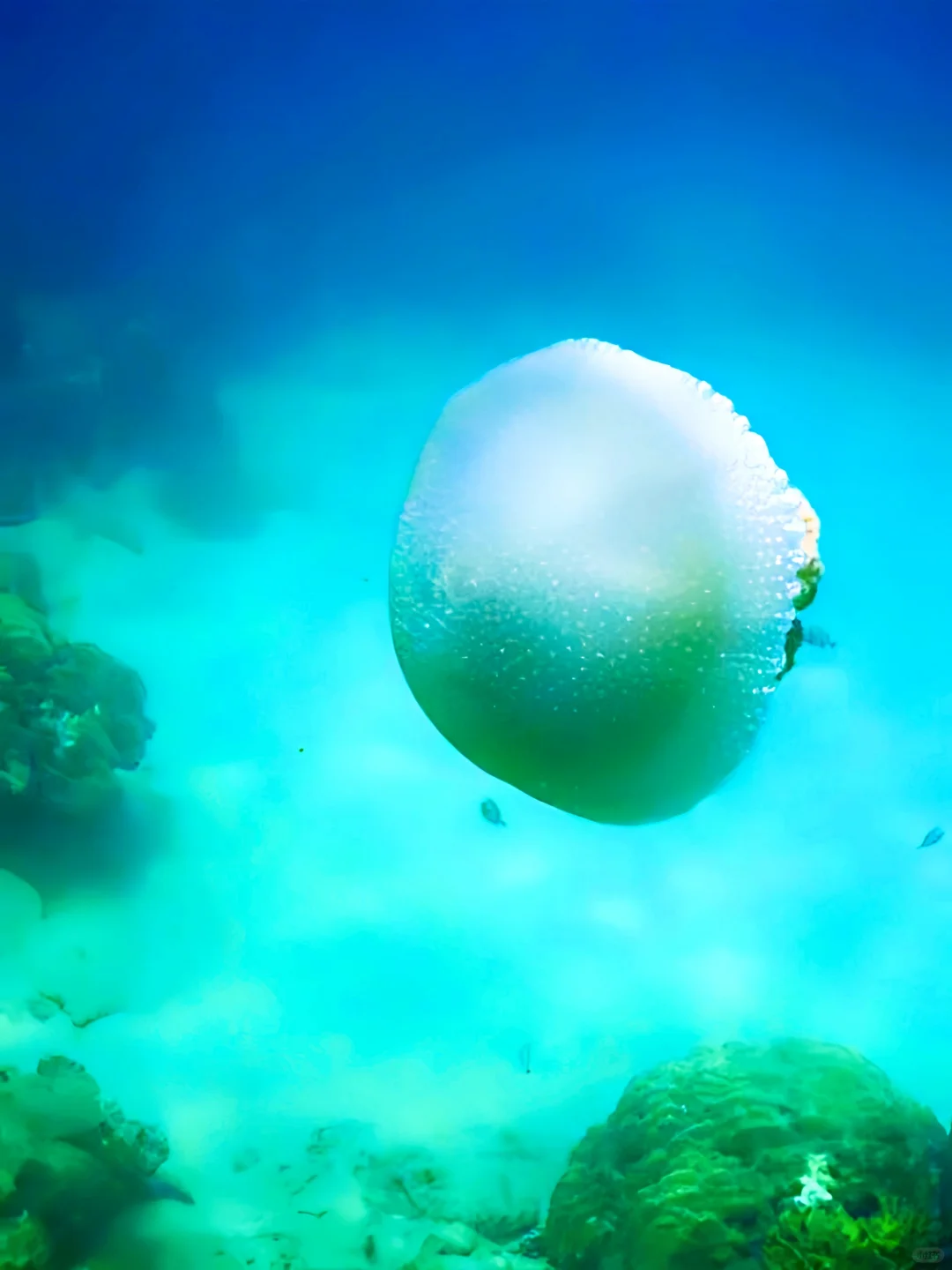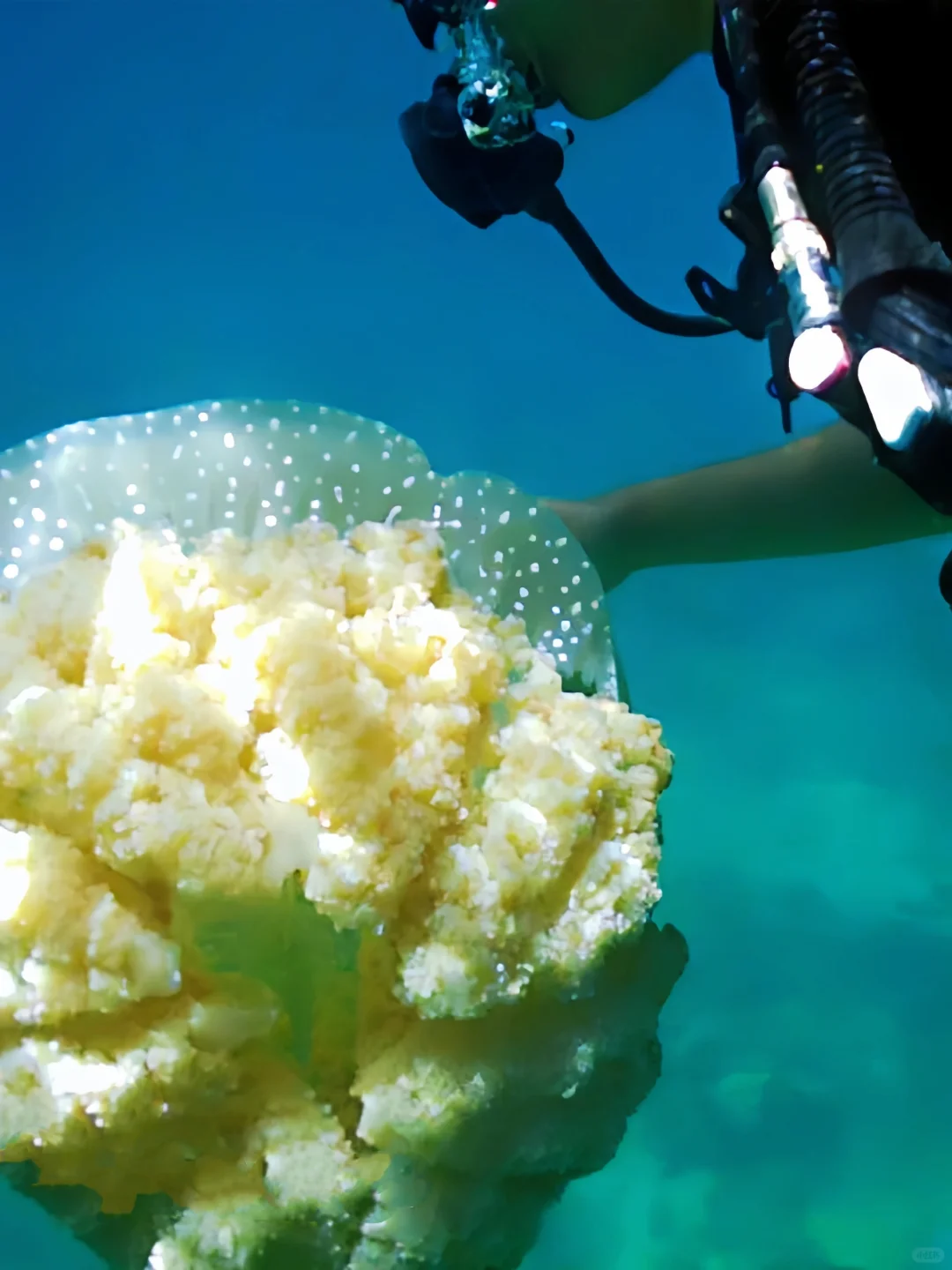 1️⃣黑岛潜水最著名的就是有几率看到大水母,超级大,非常漂亮,按照padi的规则是不能在水下触摸海洋动植物的,除非当地潜导允许。然后潜导在水下示意我们可以摸一下水母的伞盖,真的手感很奇妙!