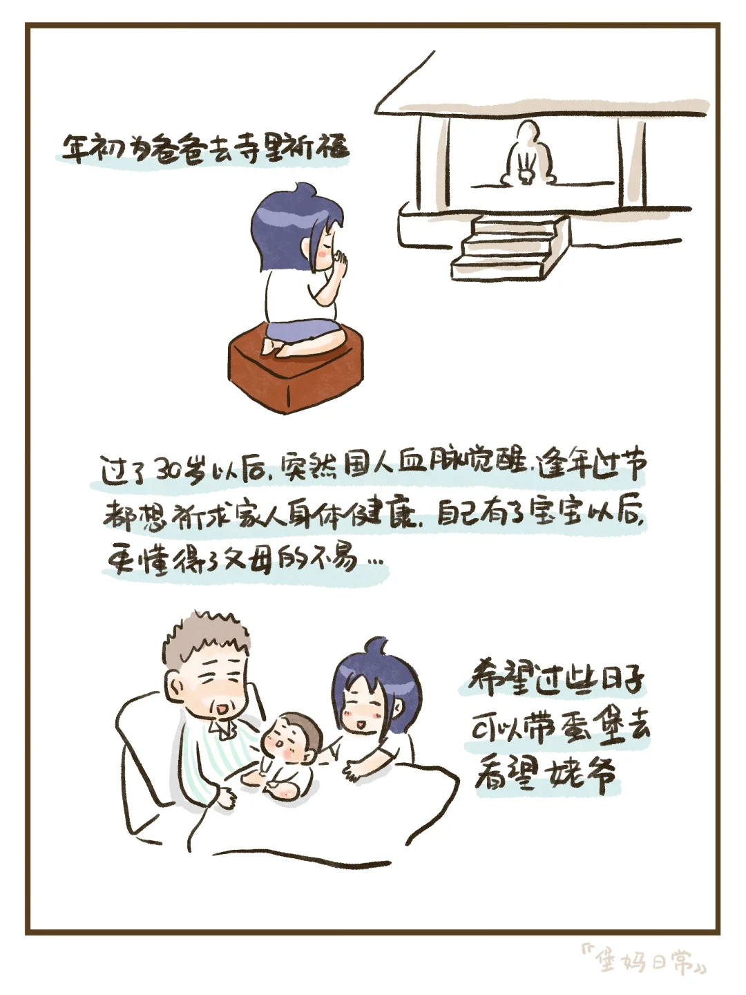 年初为爸爸去寺里祈福,过了30岁以后突然国人血脉觉醒,逢年过节都想祈求家人身体健康,自己有了宝宝以后更懂得了父母的不易,希望过些日子可以带蛋堡去看望姥爷~[皱眉R][皱眉R]