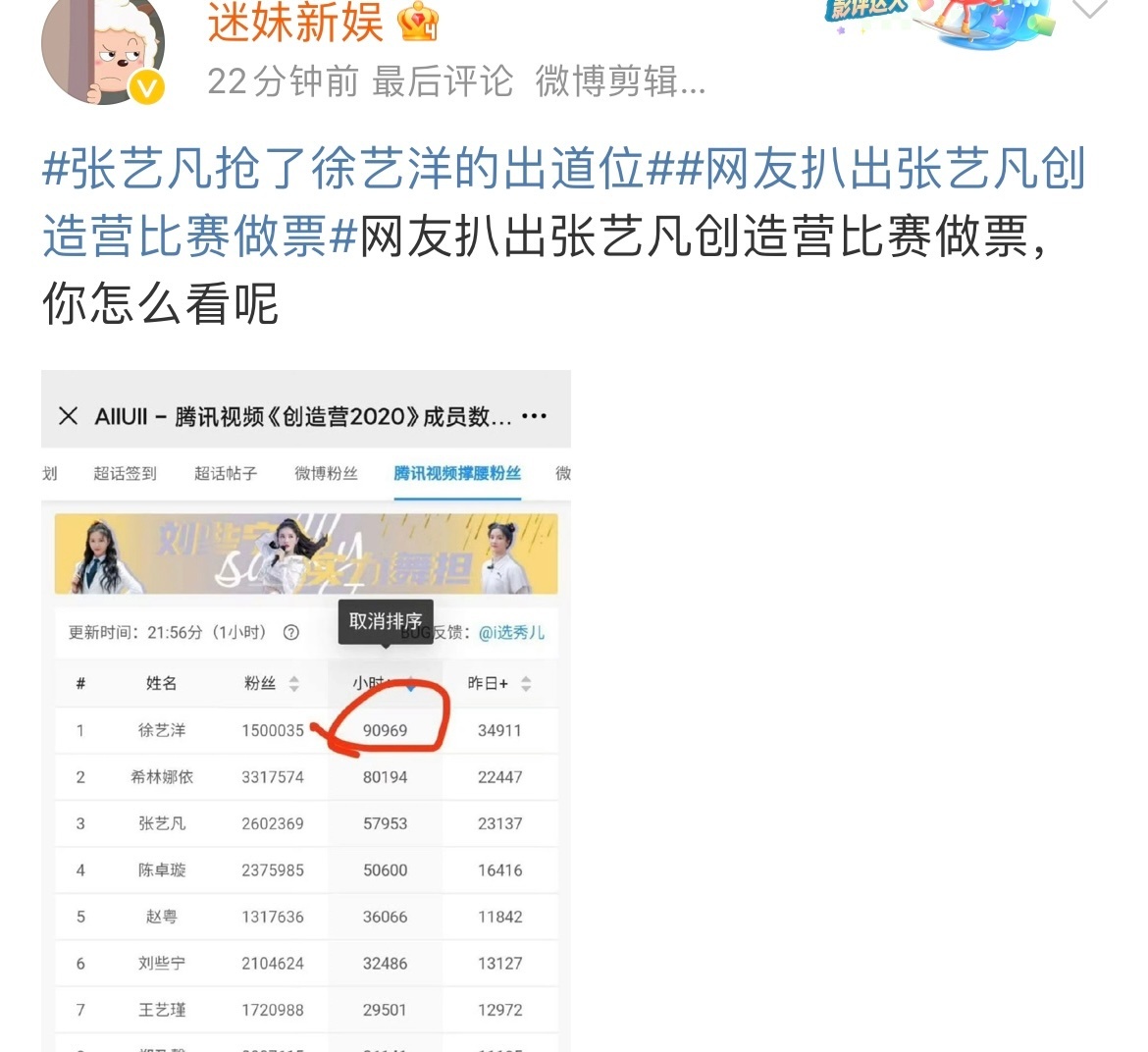 当初创造营是张艺凡抢了徐艺洋的出道位 ?!真的假的[哆啦A梦害怕]