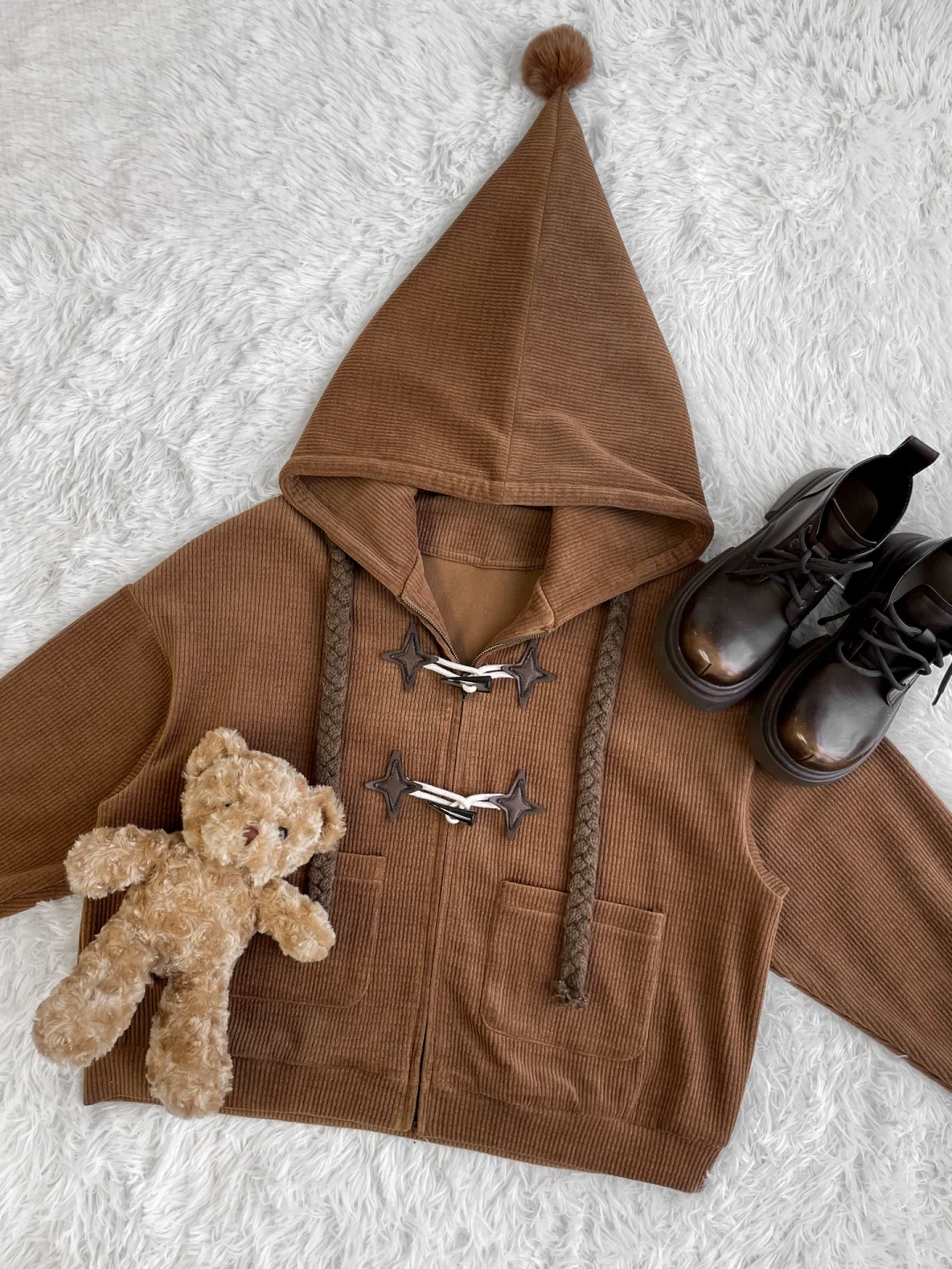 外套的女巫帽好可爱捏⚈₃⚈!配小背带好俏皮,感觉自己一秒进入了魔法世界嘿嘿~ 宝们更喜欢哪个颜色呀~