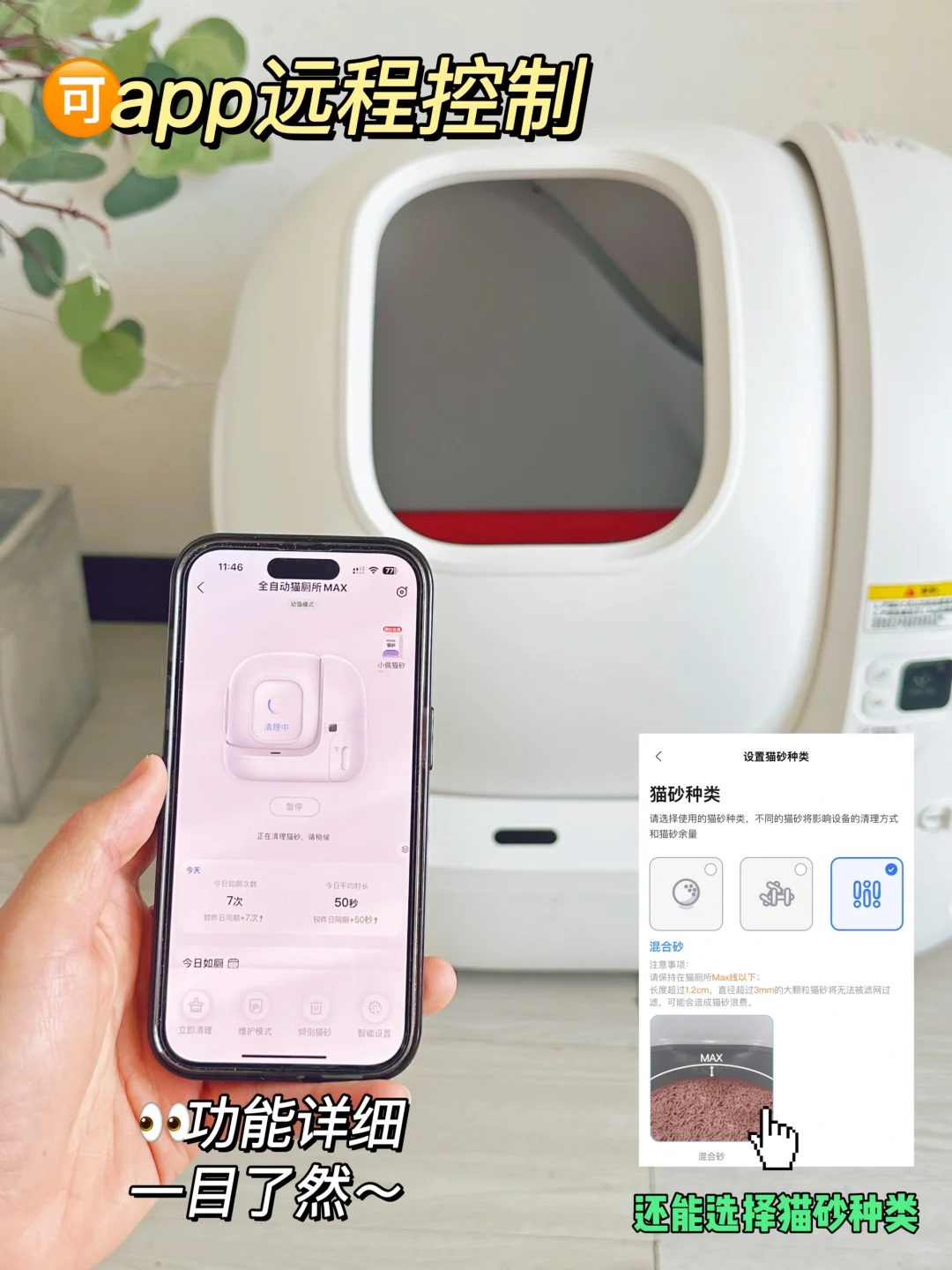 尤其是对于经常出差或者是像咱们这种每天在外面💻十几个小时的打工人来说,自动猫砂盆不光能自动清理猫砂,同时又能用手机检测猫咪如厕情况,不要太解放双手👐了!!