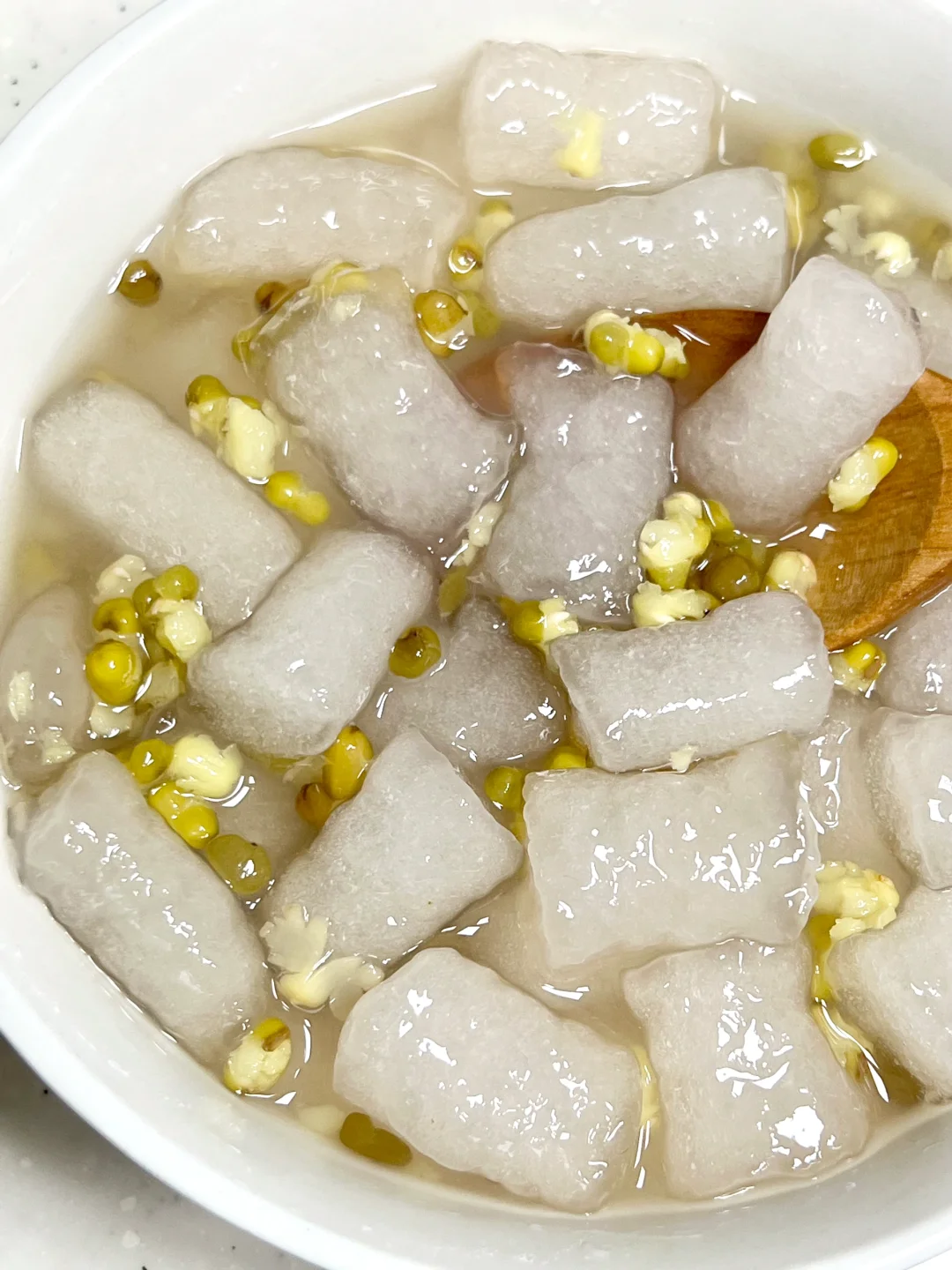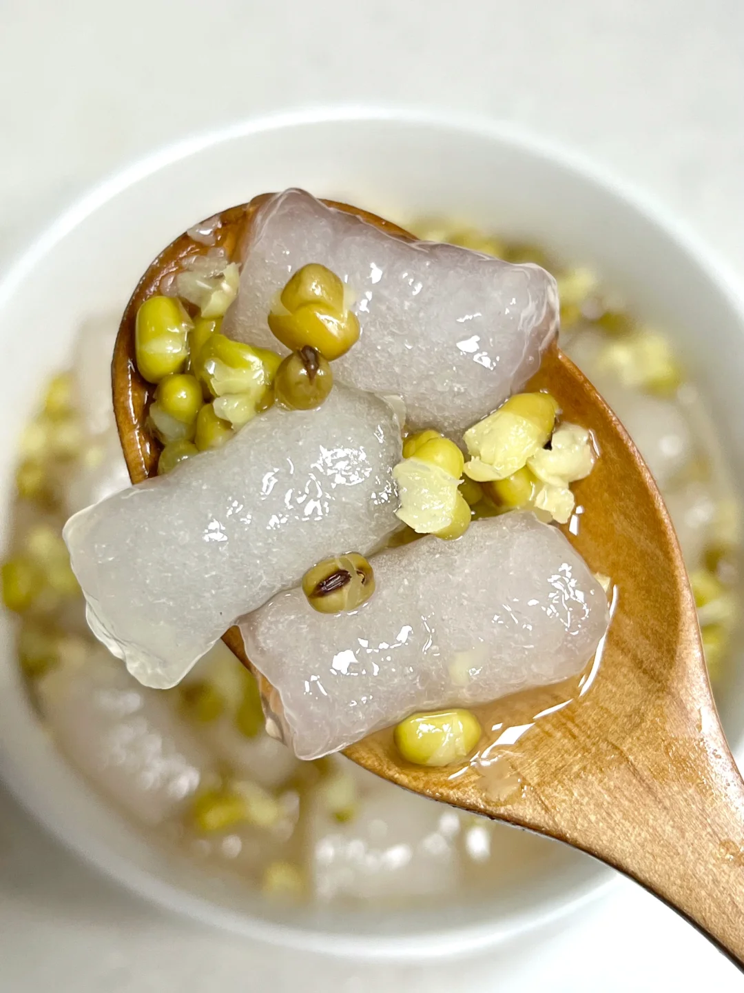 绿豆阿达子!! 做了一次就爱上了!入口很有嚼劲 Q弹的口感~ 清清爽爽的!好适合夏天 做法在图上! 简单好吃厨房小白去试试!