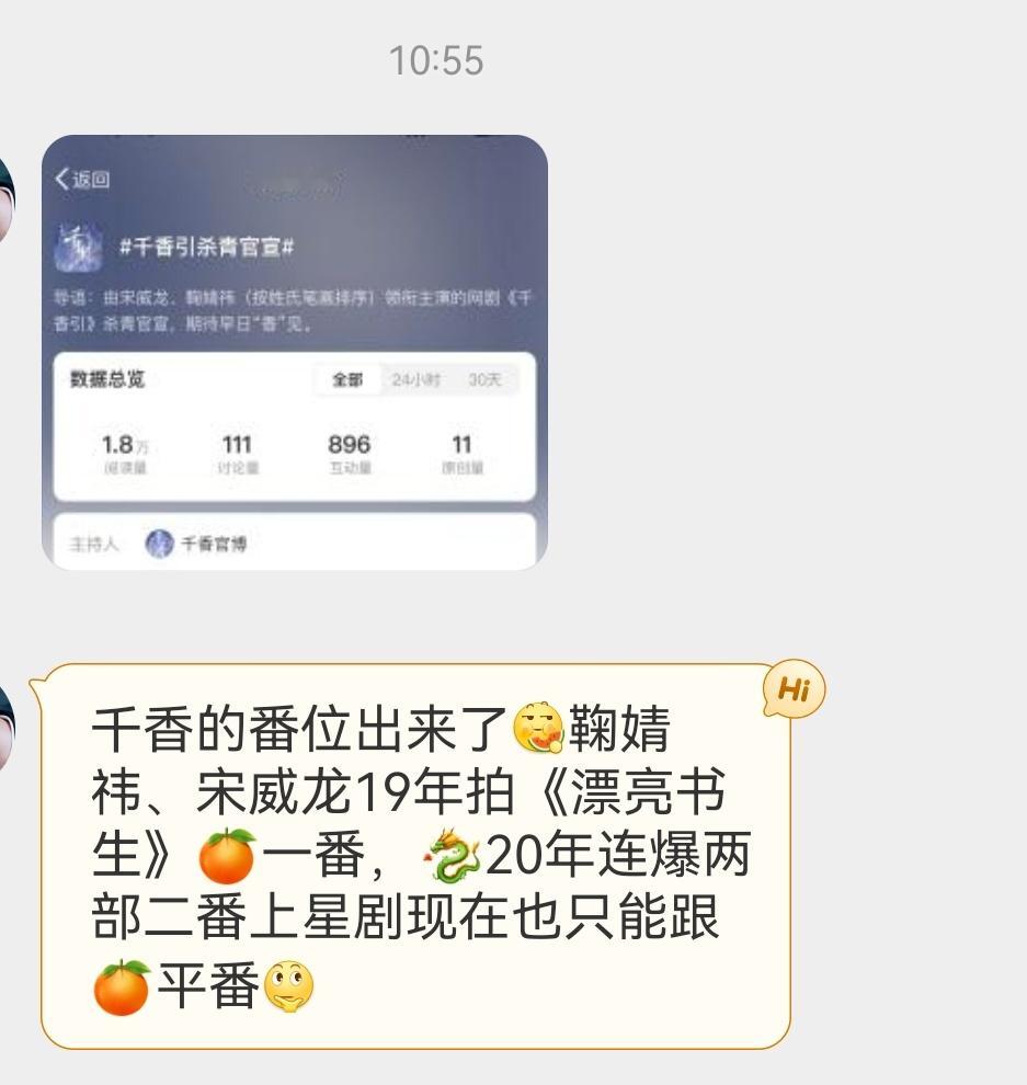 投稿,千香的番位出来了[吃瓜]鞠婧祎、宋威龙19年拍《漂亮书生》🍊一番,🐉20年连爆两部二番上星剧现在也只能跟🍊平番[思考]