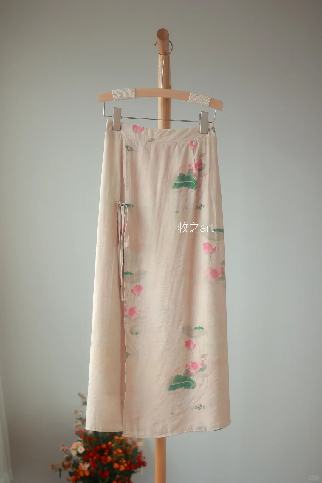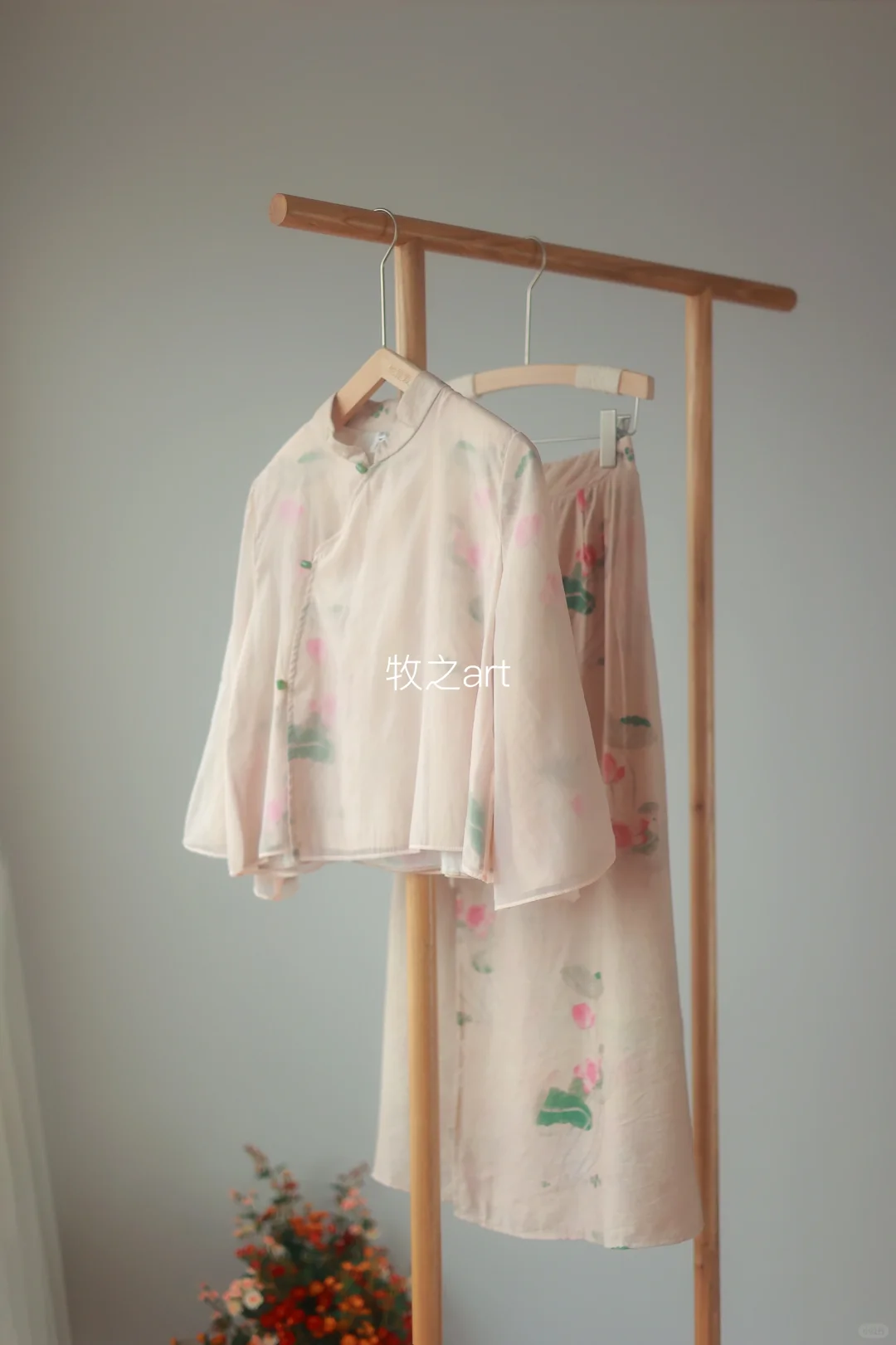 温柔的粉色调,白皮肯定合适 黄皮黑皮也都可以穿,颜色不是亮粉色 过雨荷花满院香的清新,浅色底布更衬淡雅 上衣+半裙两件套 面料是丝麻,亲肤透气,外料加了一层同色系纱料,更仙了~ 3️⃣码,版型显得身材比例特别好 上身有余量 又是遮肉显瘦的 -