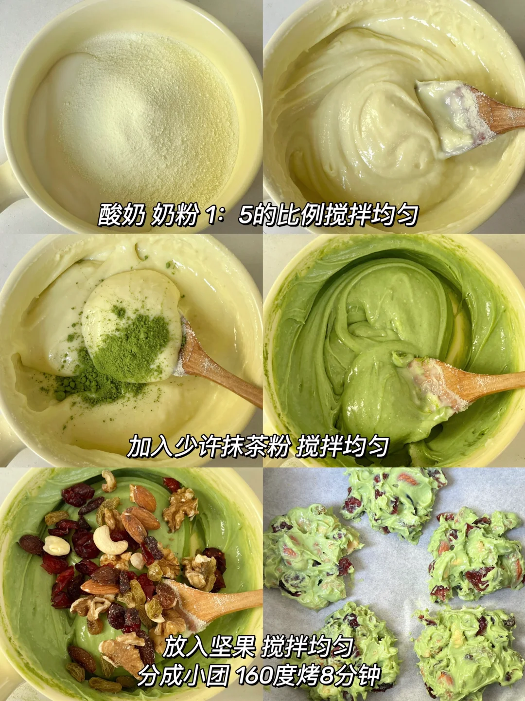抹茶酸奶疙瘩! 搅拌搅拌就能搞定!这也太方便了吧! 是那种很绵密香甜的口感~软糯糯的 口感很丰富!! 空气炸锅160度烤8分钟即可~