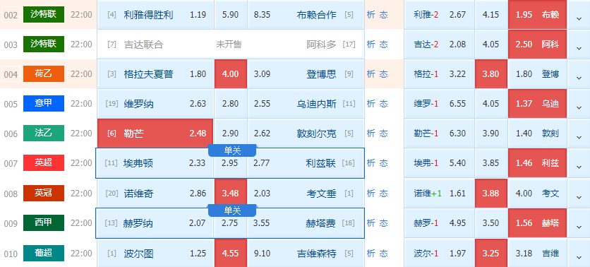 赛事推荐:让负 总进球:2/3球