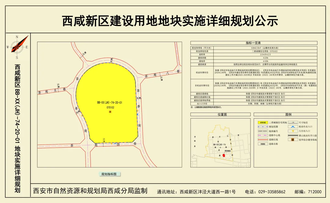 地块一,宗地编号BB-XX(JH)-74-20-01,地块位于泾河新城茶苑四巷以北,茶香街以东。