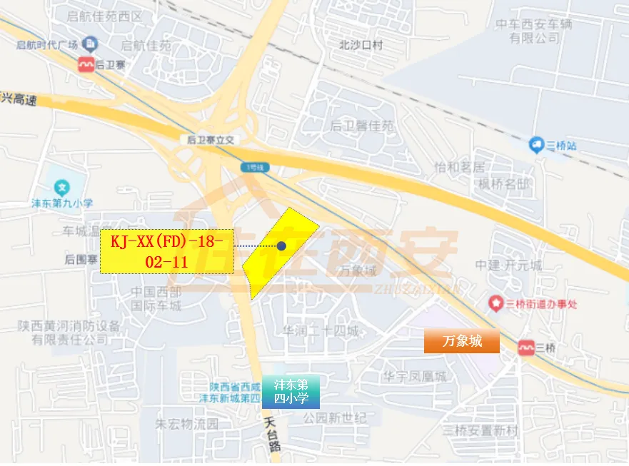 宗地编号KJ-XX(FD)-18-02-11,地块位于沣东新城三桥新街以南,天台路以东,规划路以西。