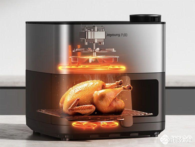 作为载人航天太空厨房的研制单位,九阳不仅助力航天员在太空中吃上热乎饭菜,更将这份航天科技带回地面,让寻常百姓也能体验太空级烹饪。九阳炎烤空气炸锅V589,正是这项技术转化的代表之作——引用航天同源加热技术,让“太空烧烤”从梦想照进现实。