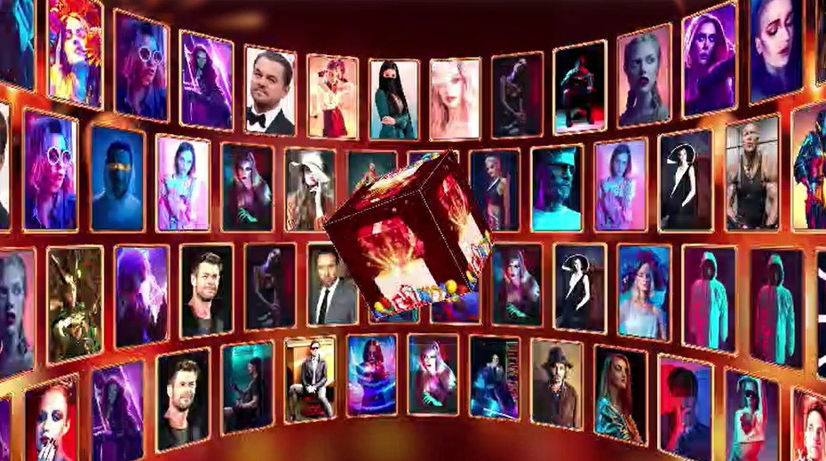 用户现场自拍上传照片,巨幕照片墙抽奖,也可后台导入照片,抽取效果炫酷,科技元素十足,。