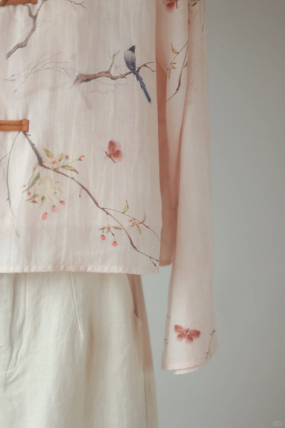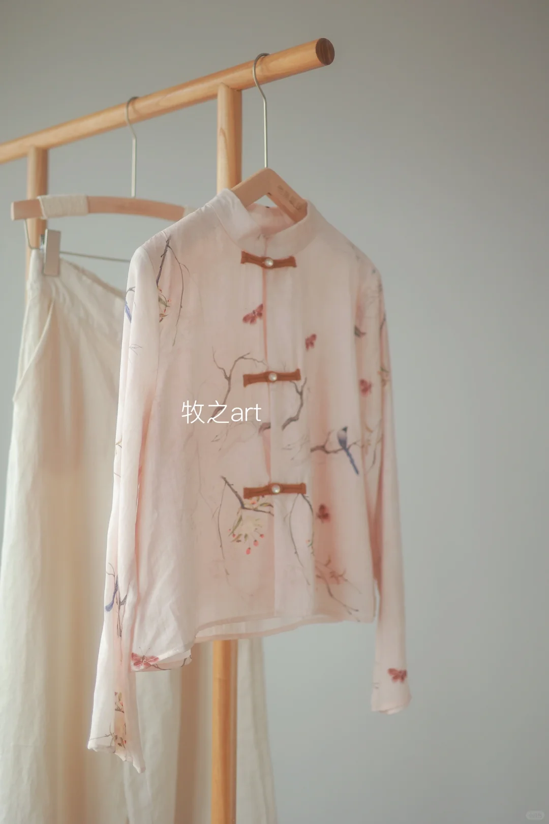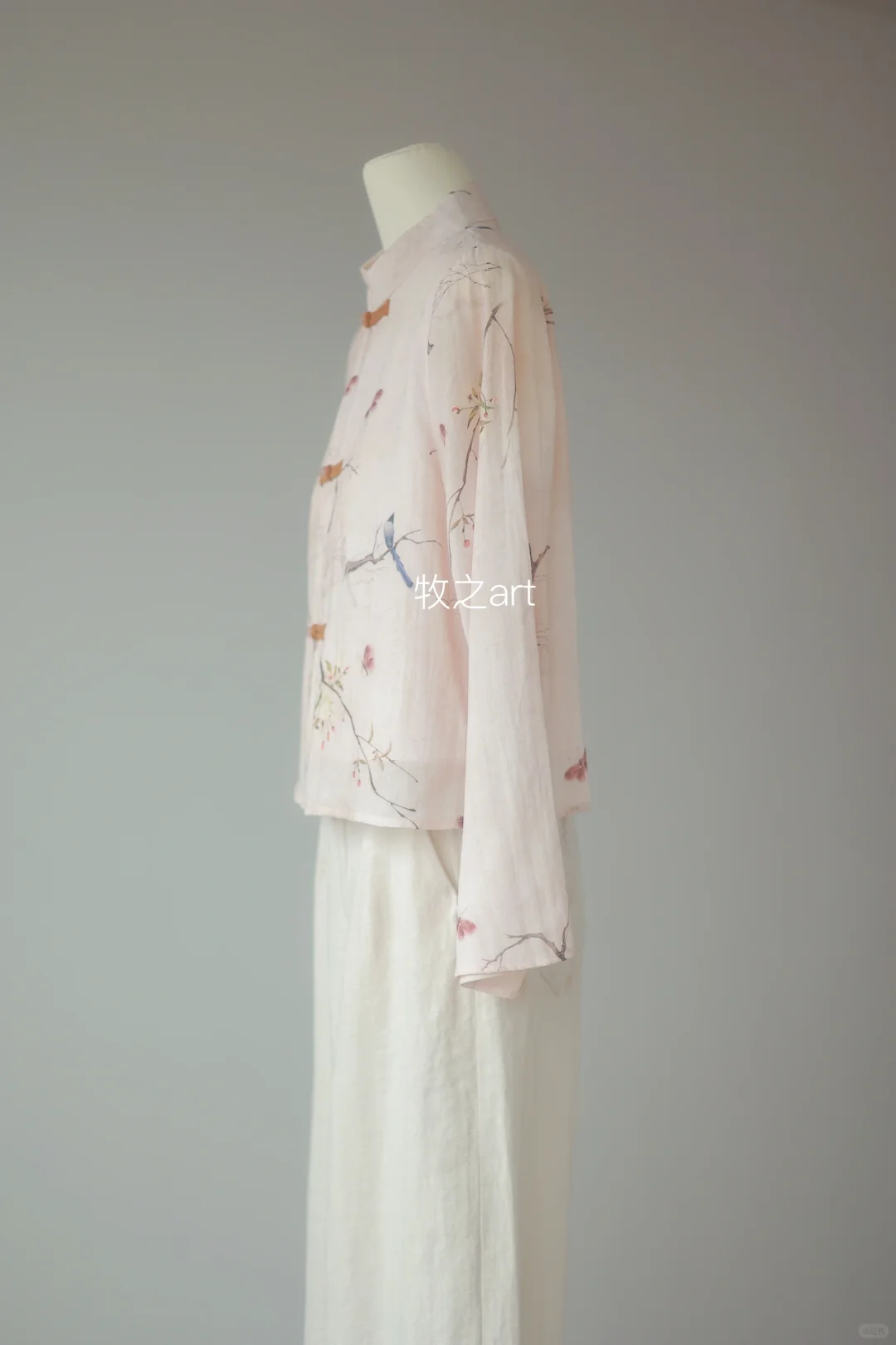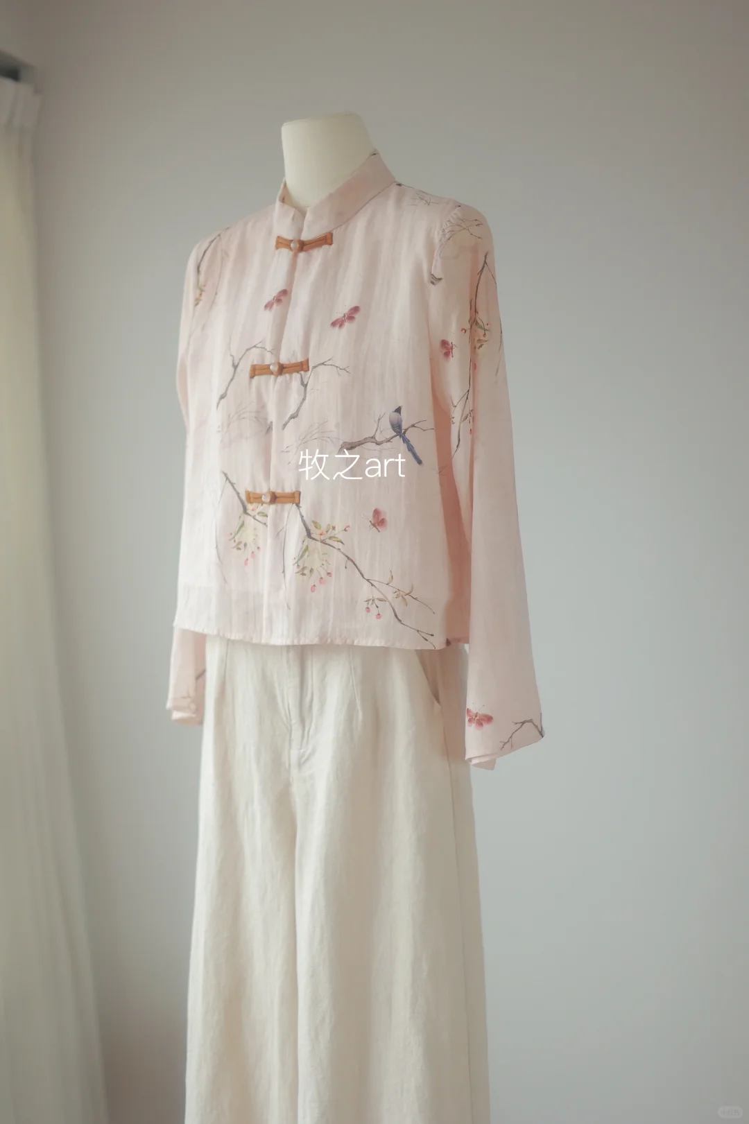 枝头喜鹊报春声,寓意极好的印花 太喜欢苎麻面料了 天然植物纤维,再热的天气穿着都是舒适透气的