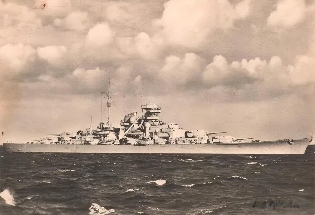1941年4月,从欧根亲王号上看到的在波罗的海的俾斯麦号。