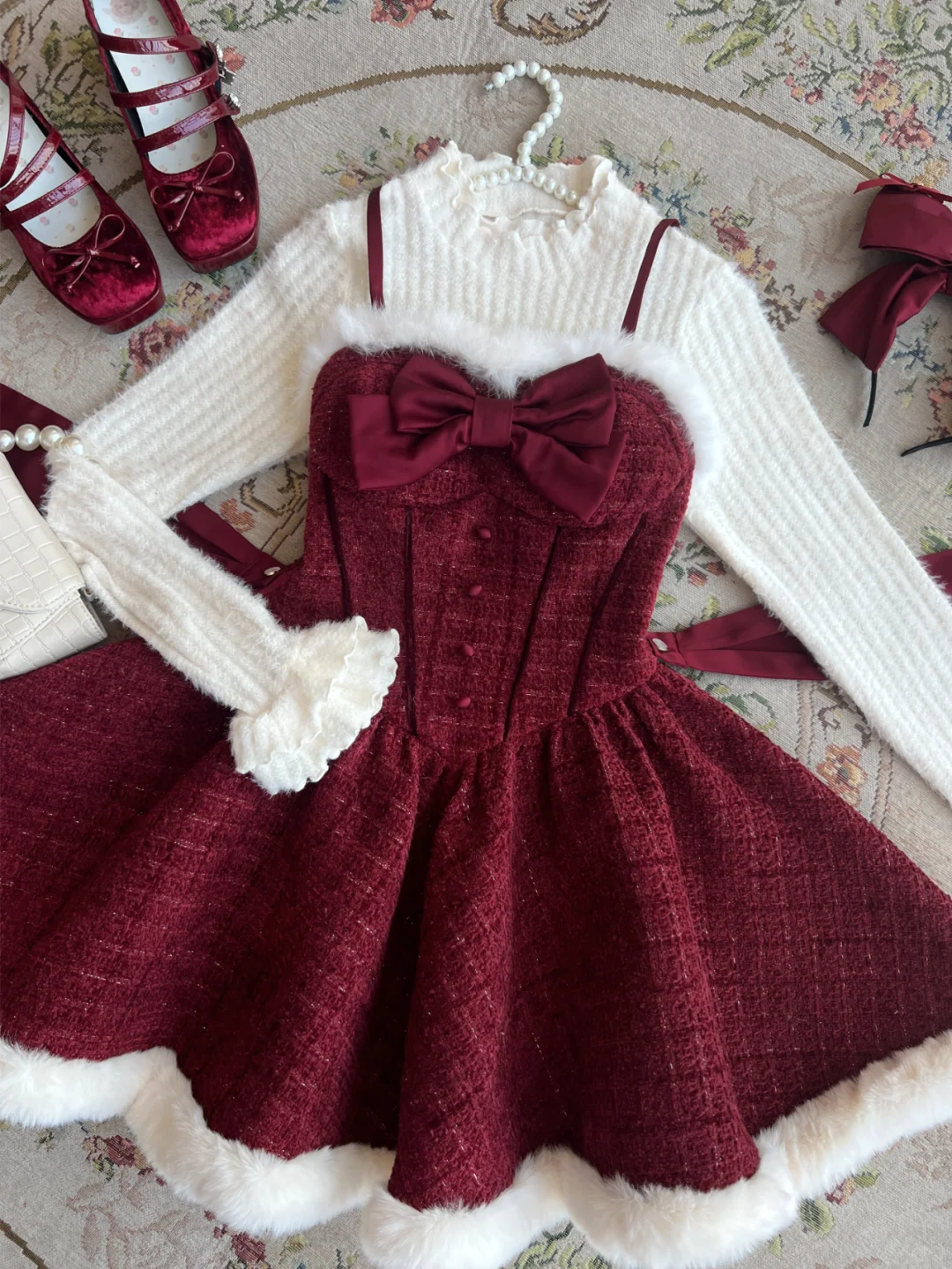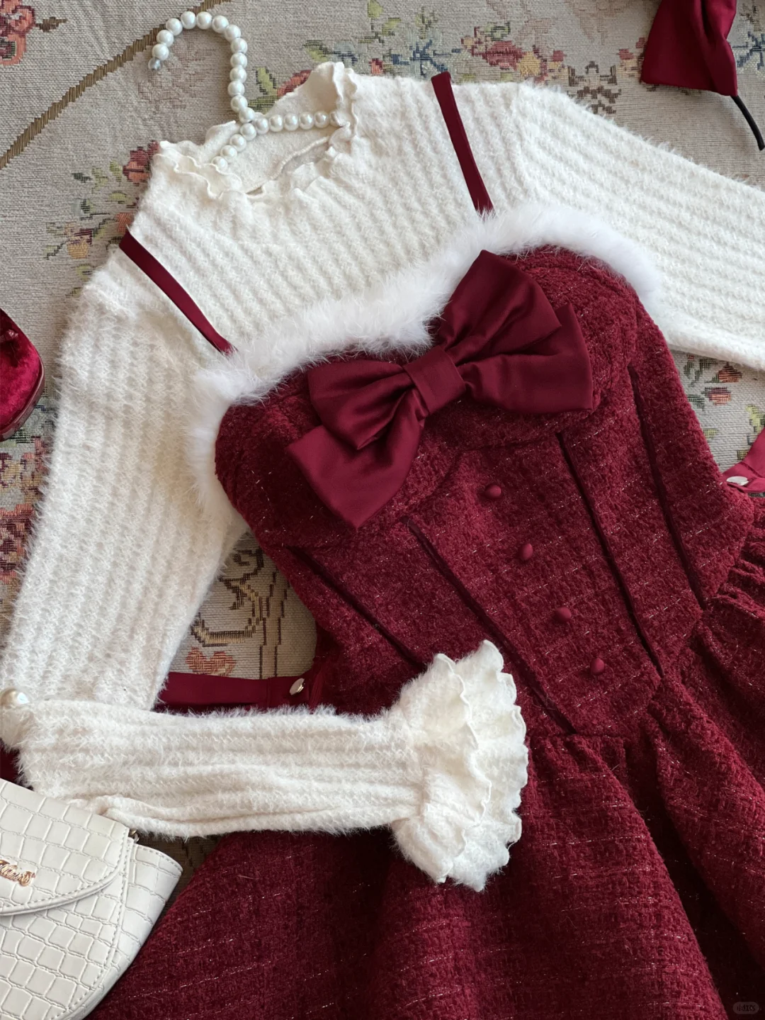 该准备圣诞小裙子咯!反复修改了好久小初雪💃终于上线啦🔔~ ❄小初雪full set包括:jsk➕内搭➕可拆毛领斗篷➕大KC➕暴力裙撑 裙子铺在地上已经很心动啦,好爱这个糯叽叽的内搭和毛绒绒斗篷,巨暖和!