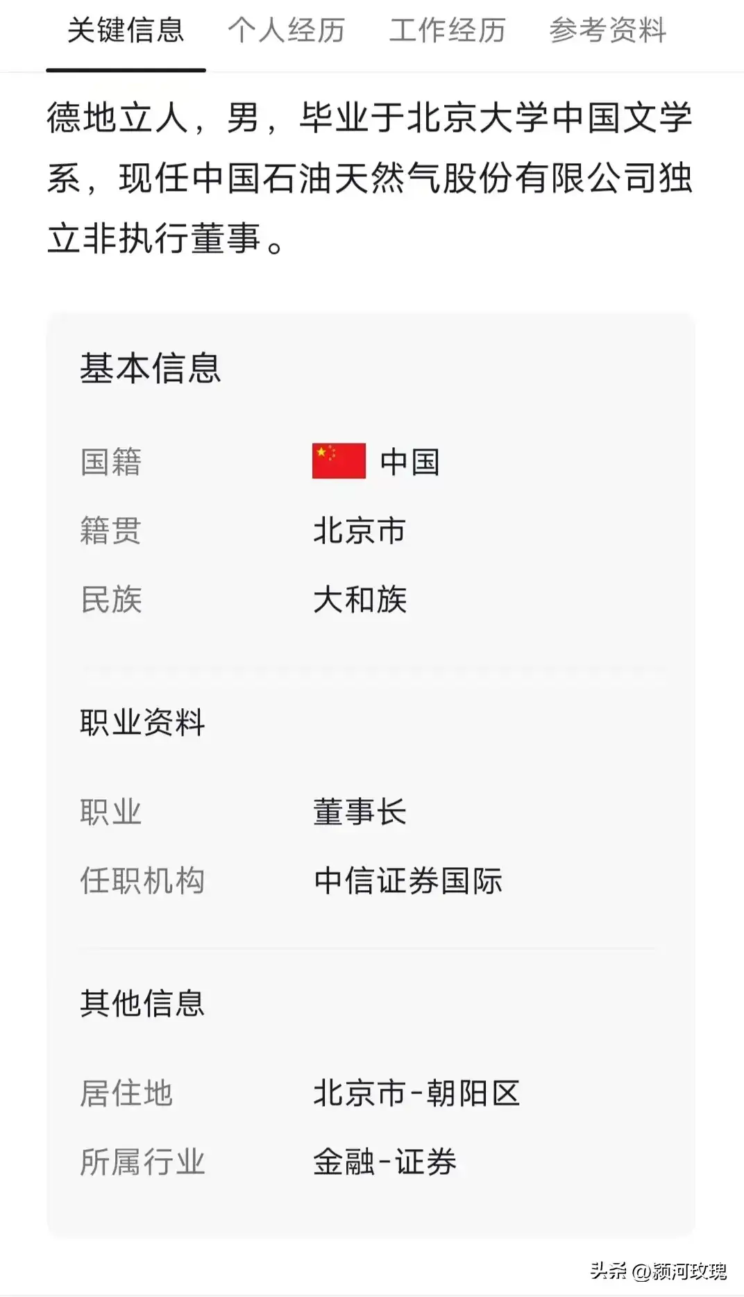 百度百科显示,中信证券董事长德地立人是日本大和族,毕业于北大文学系,这是什么情况