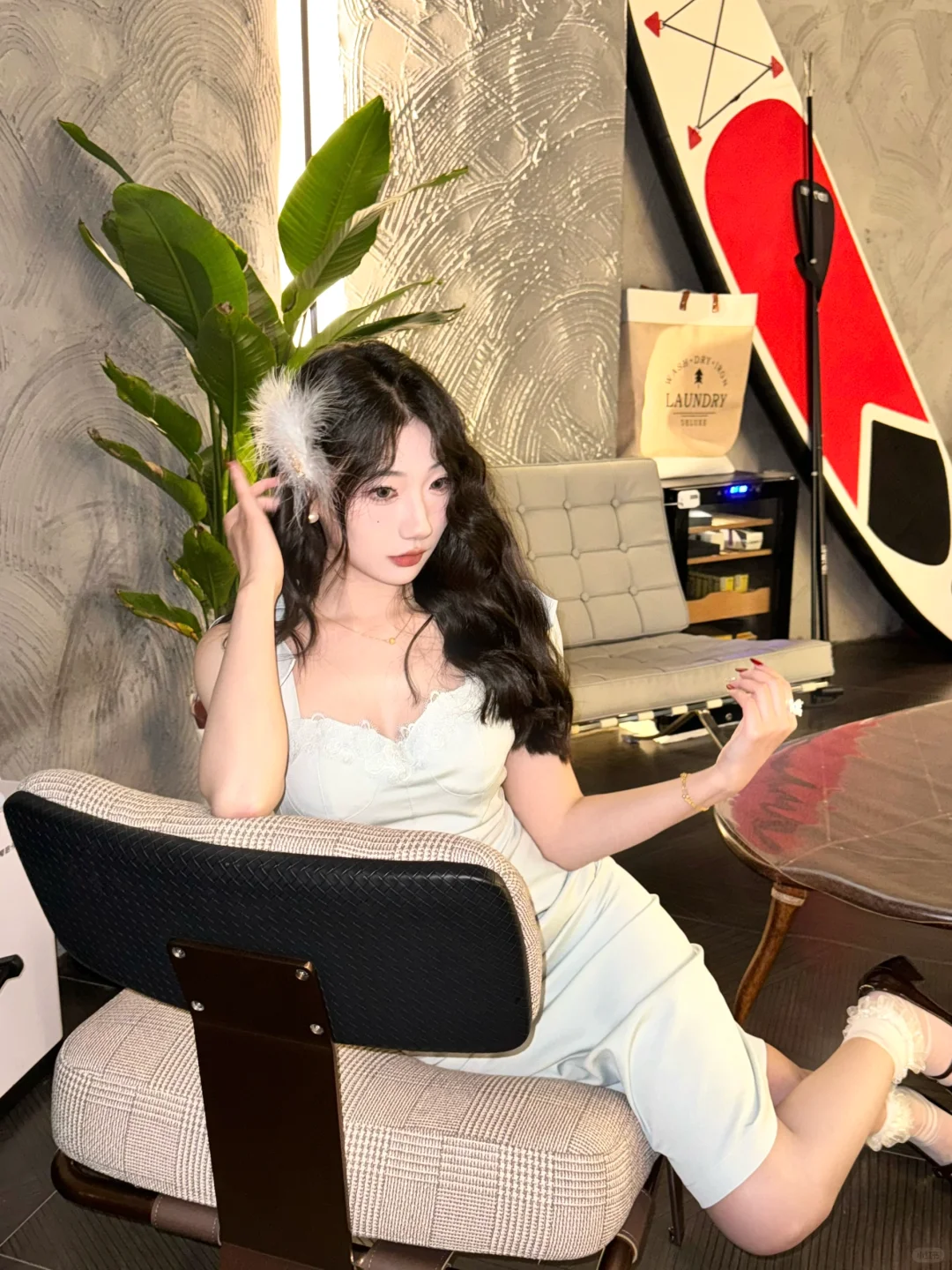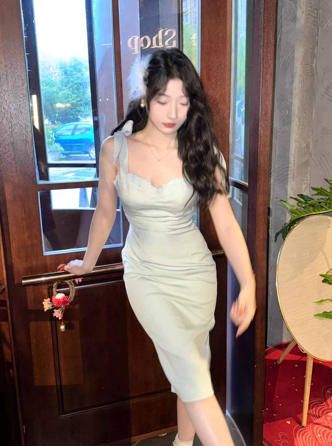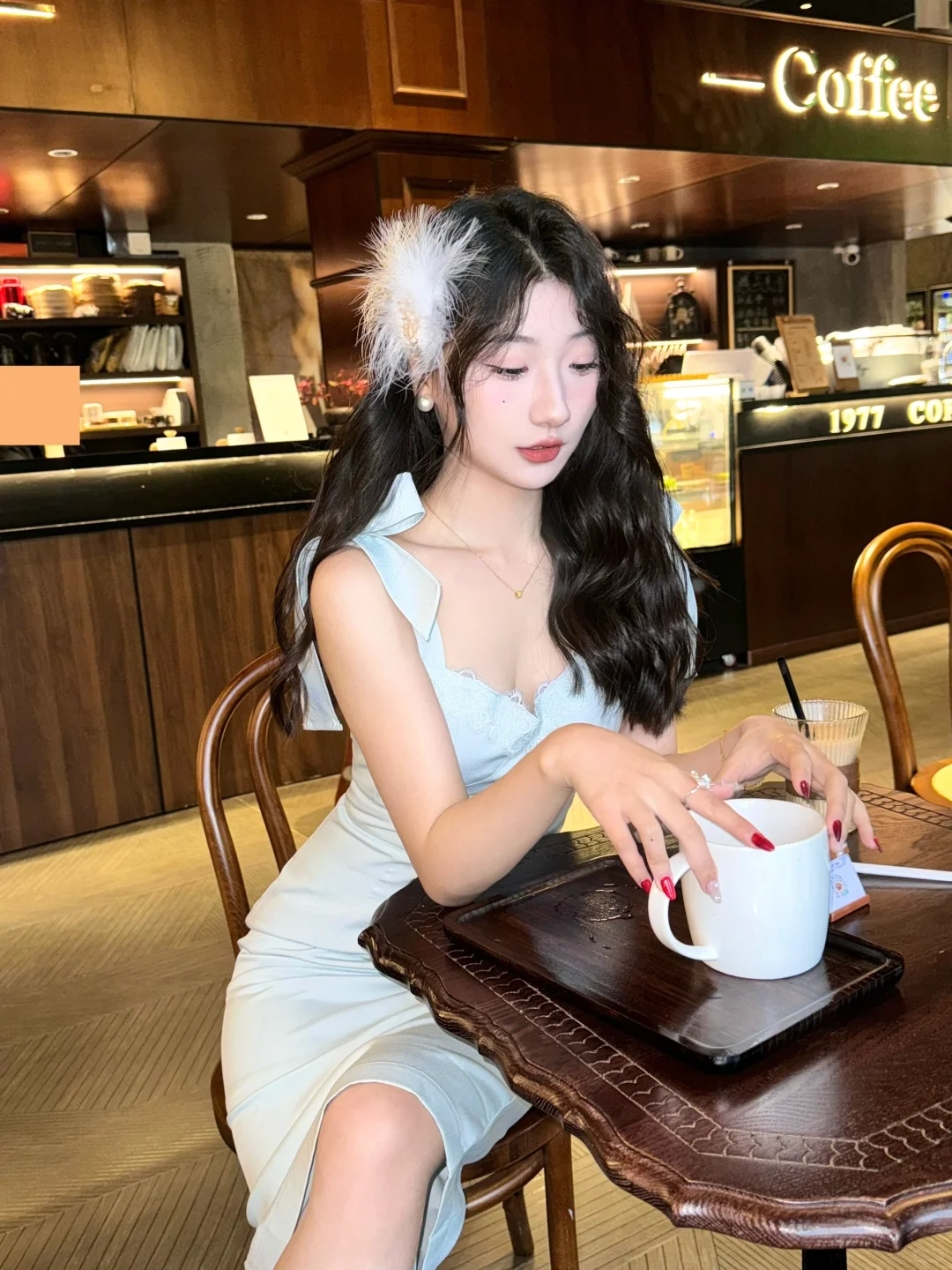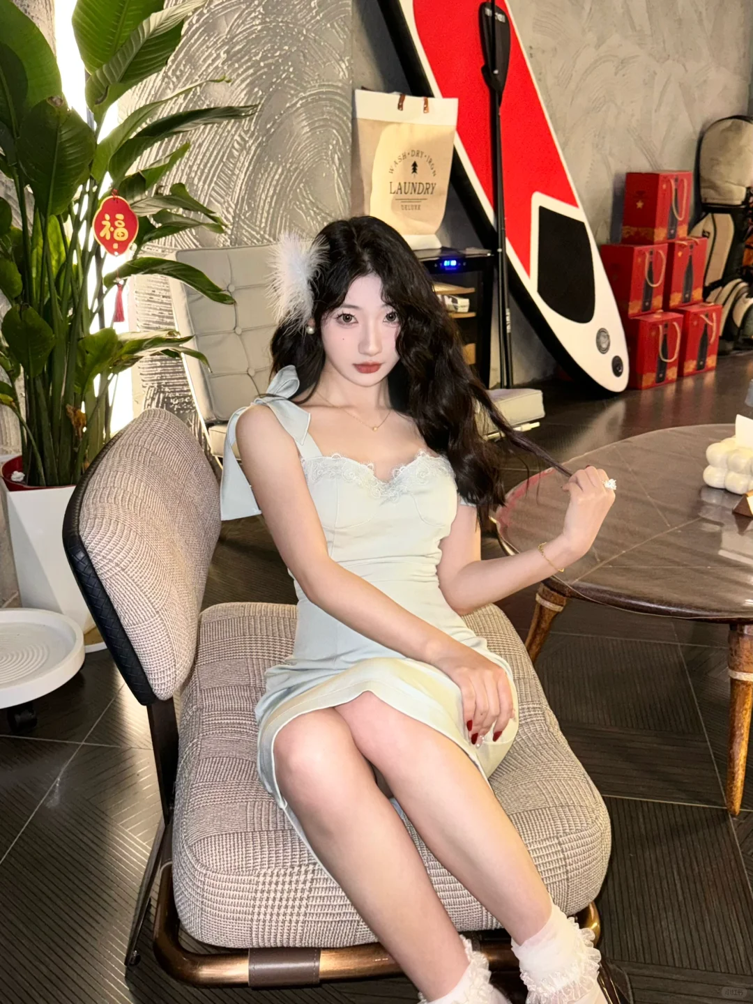 蓝色吊带包臀长裙 好温柔好优雅好纯欲啊啊啊啊