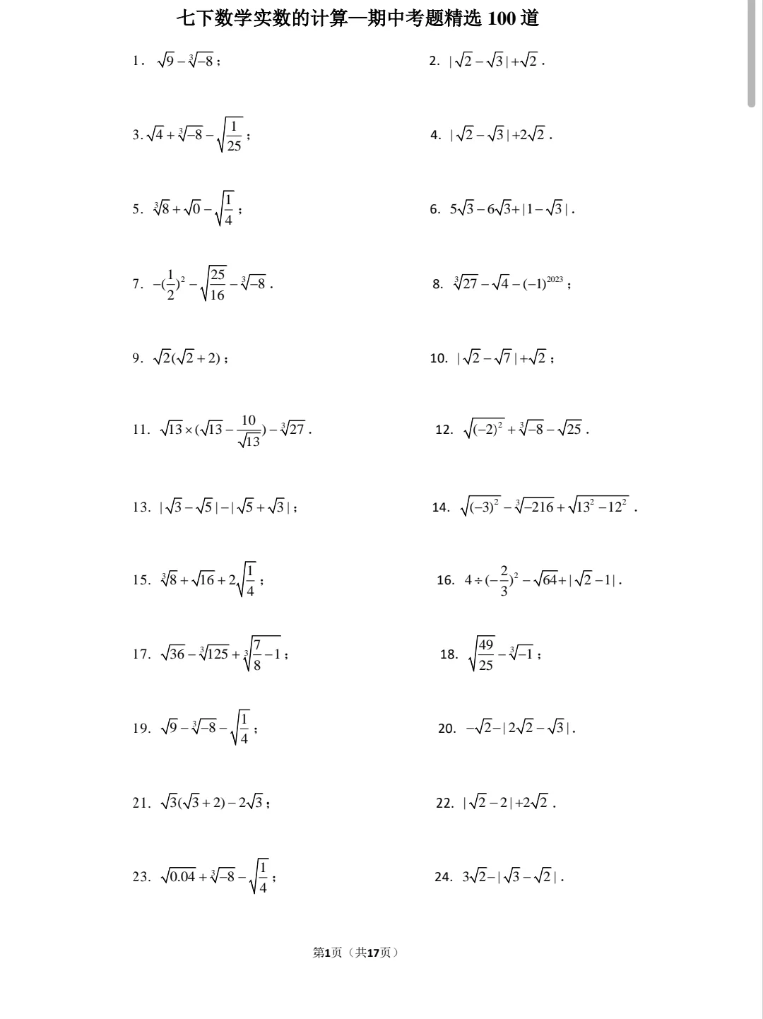 初中数学知识点 压轴题 初中数学 中考数学几何模型 中考数学 二次函数 数学公式 解题技巧 中职数学 数学 7下数学 七下数学 初一数学 实数计算期中考试题