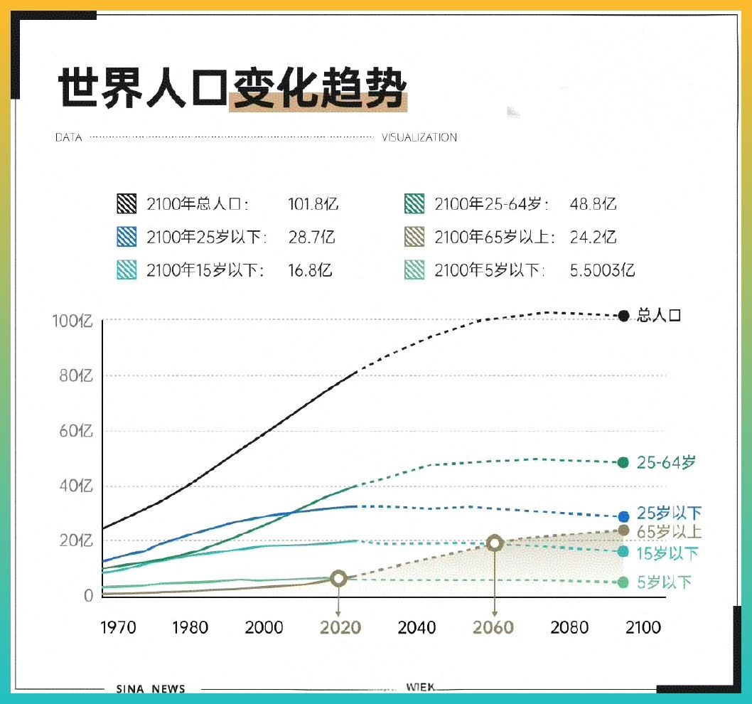 你看,2100年全球65岁以上人口的曲线直线上扬——大家都在变老,但也都想活得更精彩。