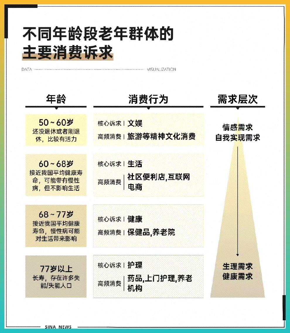 看这张表格,不同年龄段的需求根本不一样——五十多岁,想要自我实现、情感体验,六十多岁开始要健康、社交兼顾,七十多岁以后,安全感和生活便利最重要。能把旅行安排得明明白白,才是真的会生活。