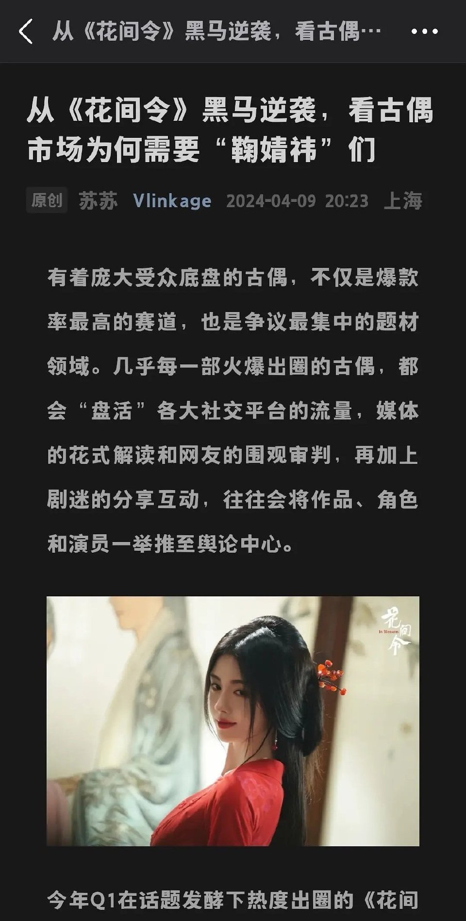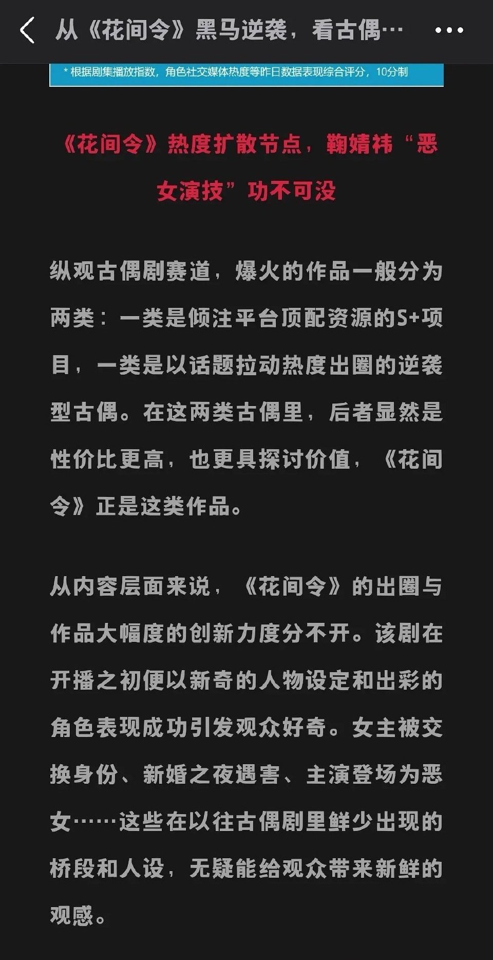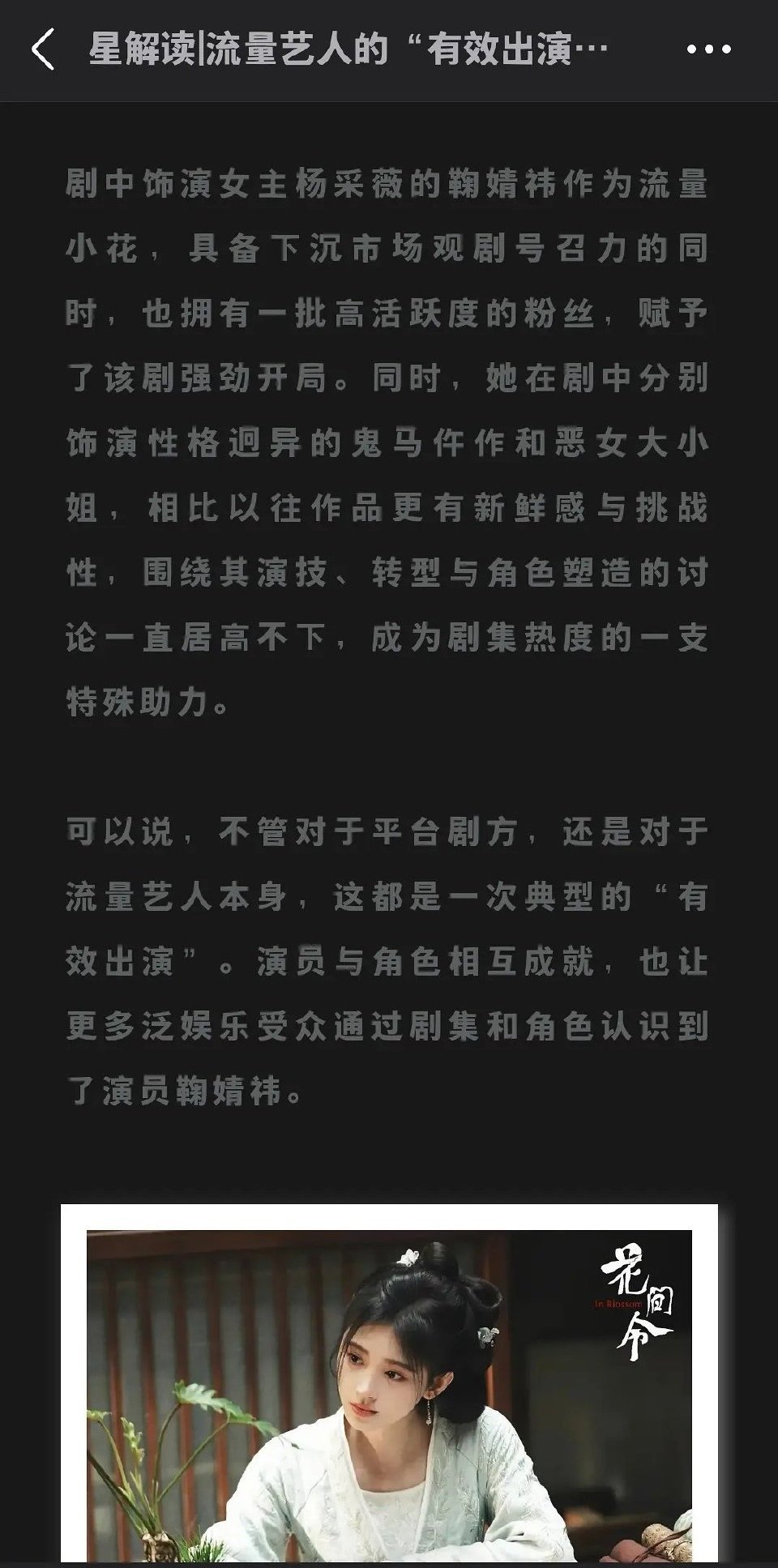 鞠婧祎《花间令》 业内评价来咯[羞嗒嗒]