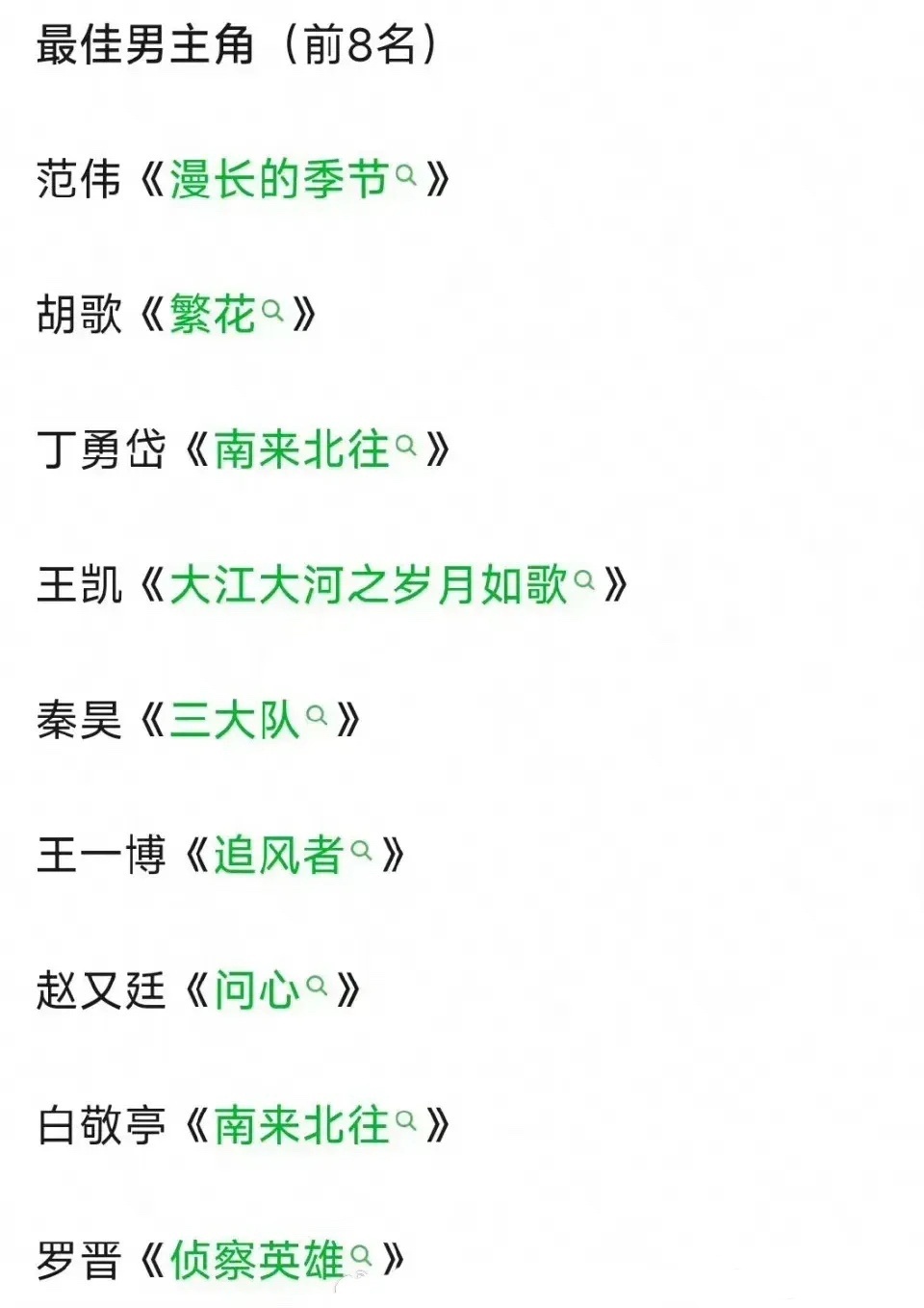 瓣组票选的白玉兰视帝视后热门候选人名单⬅️视帝投票TOP3⃣️:范伟、胡歌、王一