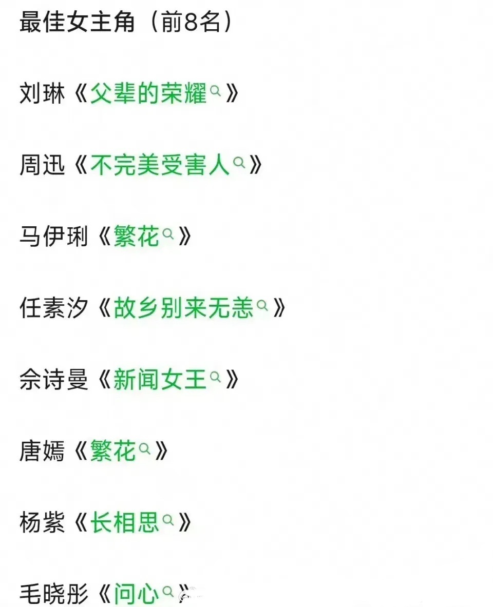 瓣组票选的白玉兰视帝视后热门候选人名单⬅️