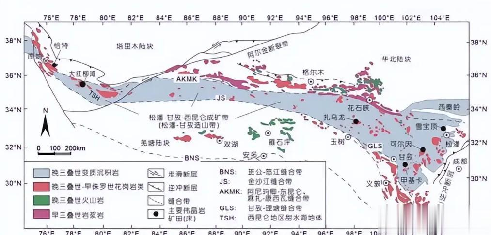 你的目光肯定会被西部板块那个面积巨大、呈现倒三角形的神秘区域死死吸引,地质学家给这个庞然大物起了一个极其硬核的名字,叫做松潘减号甘孜减号西昆仑锂矿巨型成矿带。