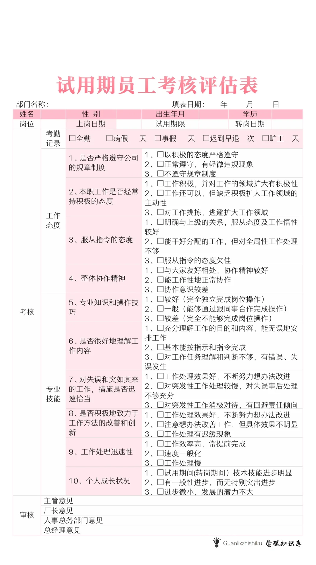✅周工作计划表,试用期员工考核评估表