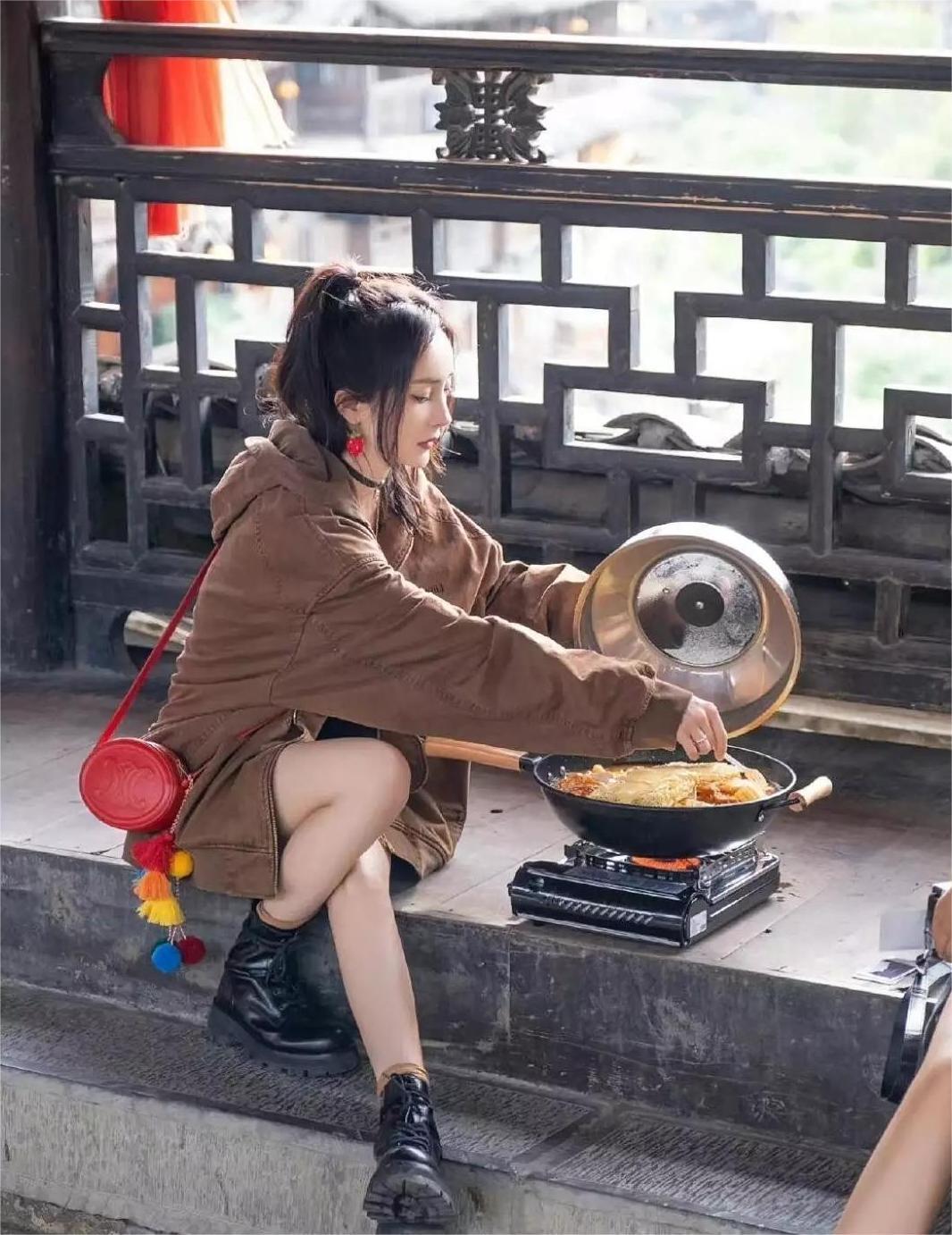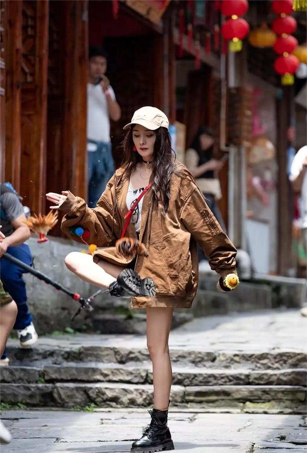 杨幂罕见去买菜,带火了一种新穿法:大外套+短裤+马丁靴,时髦又洋气,宽松版型的大
