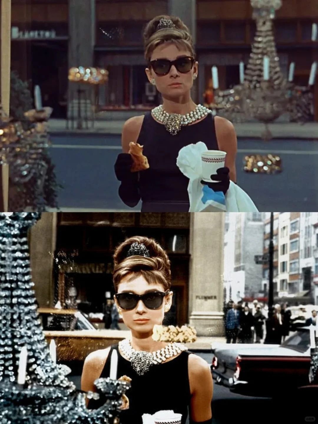 奥黛丽·赫本在《蒂芙尼的早餐》中塑造了经典的霍莉形象,她身着纪梵希的小黑裙,手捧咖啡在Tiffany's橱窗外凝望的画面成为了永恒的经典。影片虽讲述了纽约社交名媛霍莉的内心挣扎与成长,却也为我们展示了优雅与摩登完美融合的时尚典范。