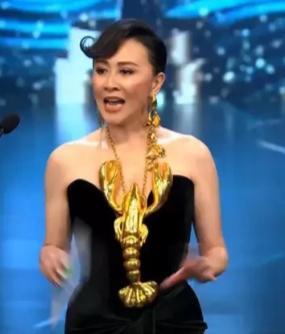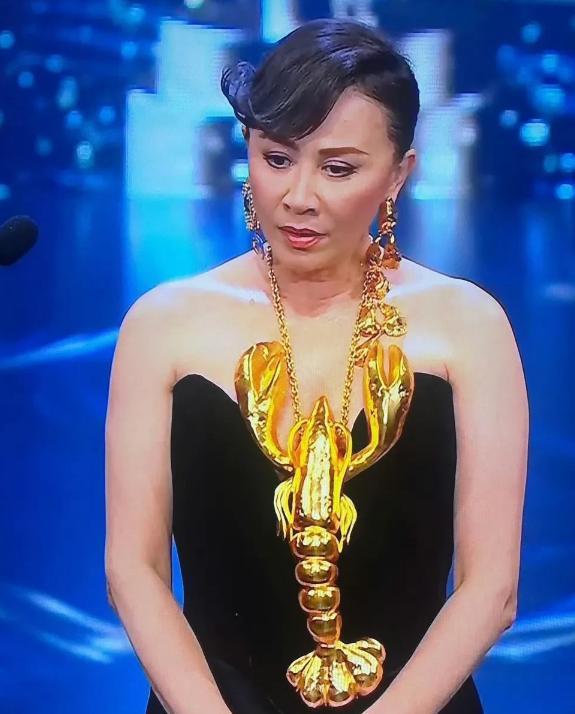 刘嘉玲亮相金像奖,身穿黑色抹胸长裙,脖子上戴着纯金打造的龙虾项链,看着估计有个10几斤重,这是为盱眙小龙虾代言吗?也不知道她脖子疼不疼,难不难受!不得不说,今年的金像奖明星中,刘嘉玲可谓最豪横的一位!这么浮夸的造型,只有她才能驾驭得了。#刘嘉玲金像奖# #春日生活打卡季#
