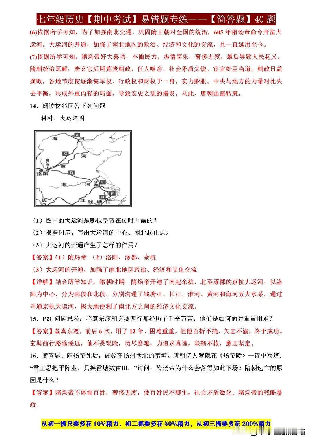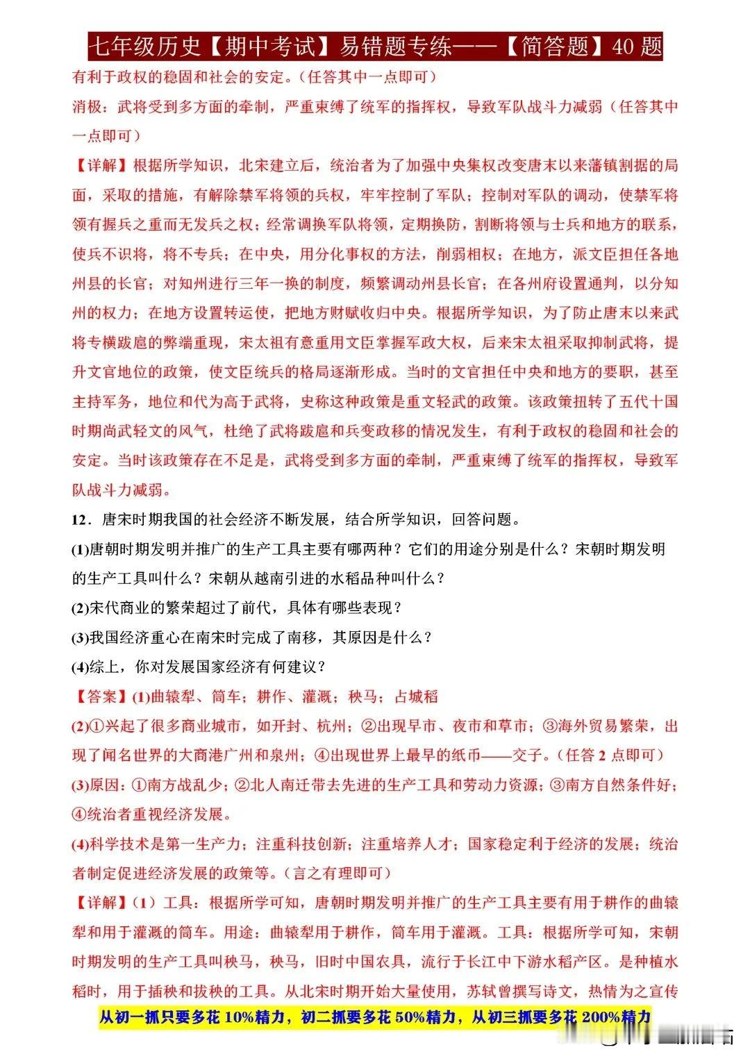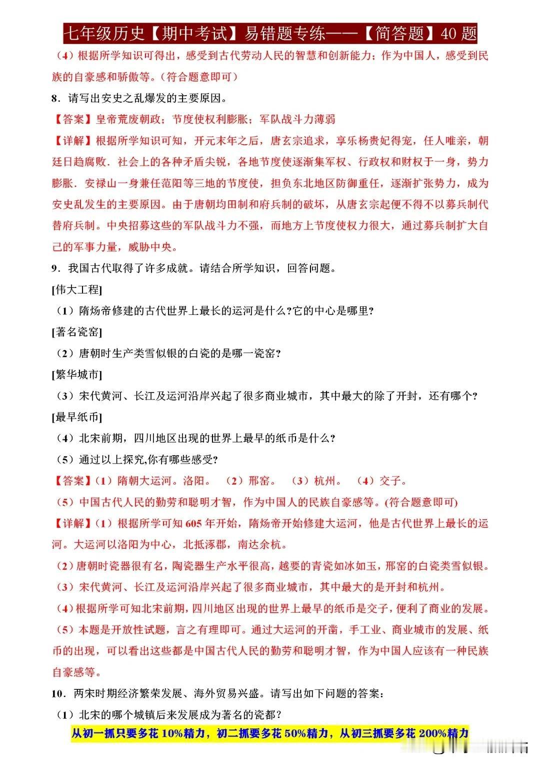 七年级历史期中考试易错题专练,历年考试扣分多的题,别再犯错了 七年级历史期中考试,易错题是复习的关键。历年考试中,学生们常常在一些细节和知识点上失分。为了避免重蹈覆辙,我们要针对这些易错题进行专项练习。通过反复做题、总结规律,加深对知识点的理解和记忆。 同时,要注重历史事件的关联性和整体性,避免孤立地记忆。在复习过程中,还可以借助图表、时间轴等工具,帮助梳理历史脉络。记住,历史不是孤立的,要将其与现实相联系,理解历史对我们今天的启示。只有这样,才能在考试中游刃有余,取得好成绩。
