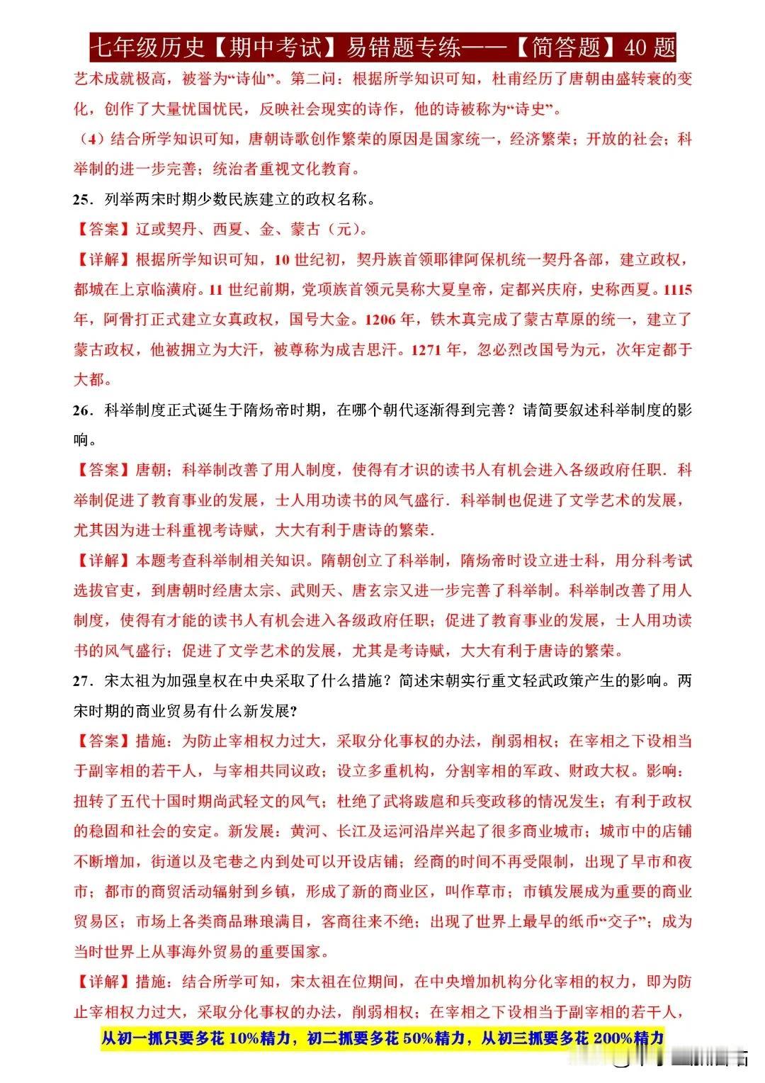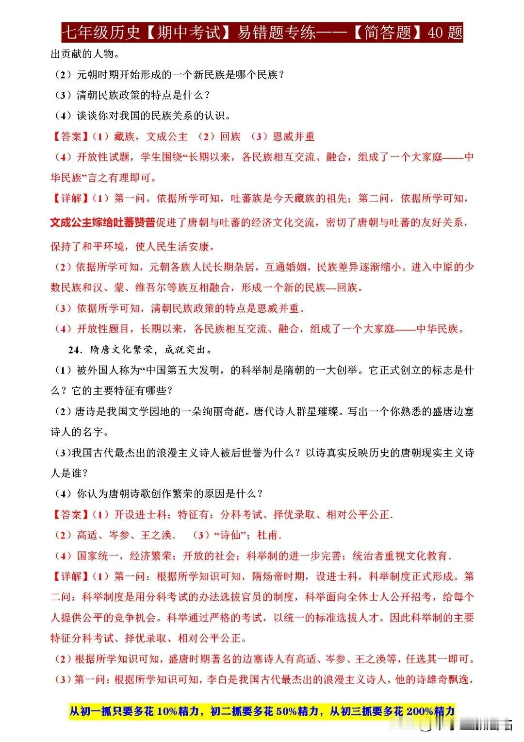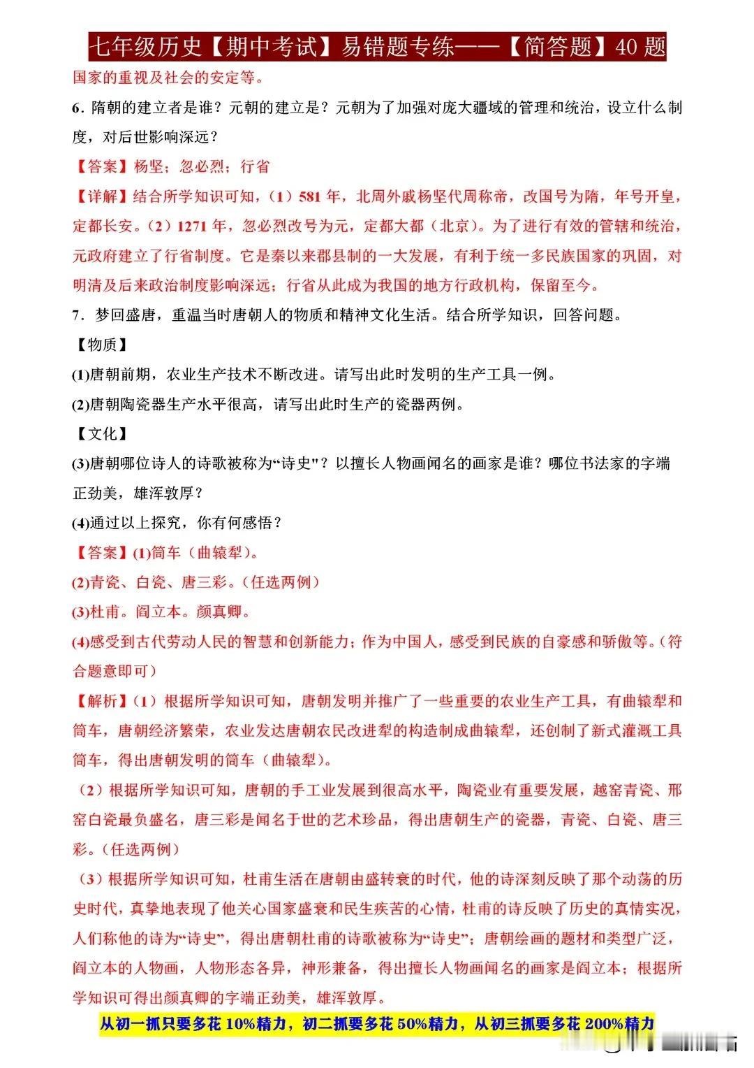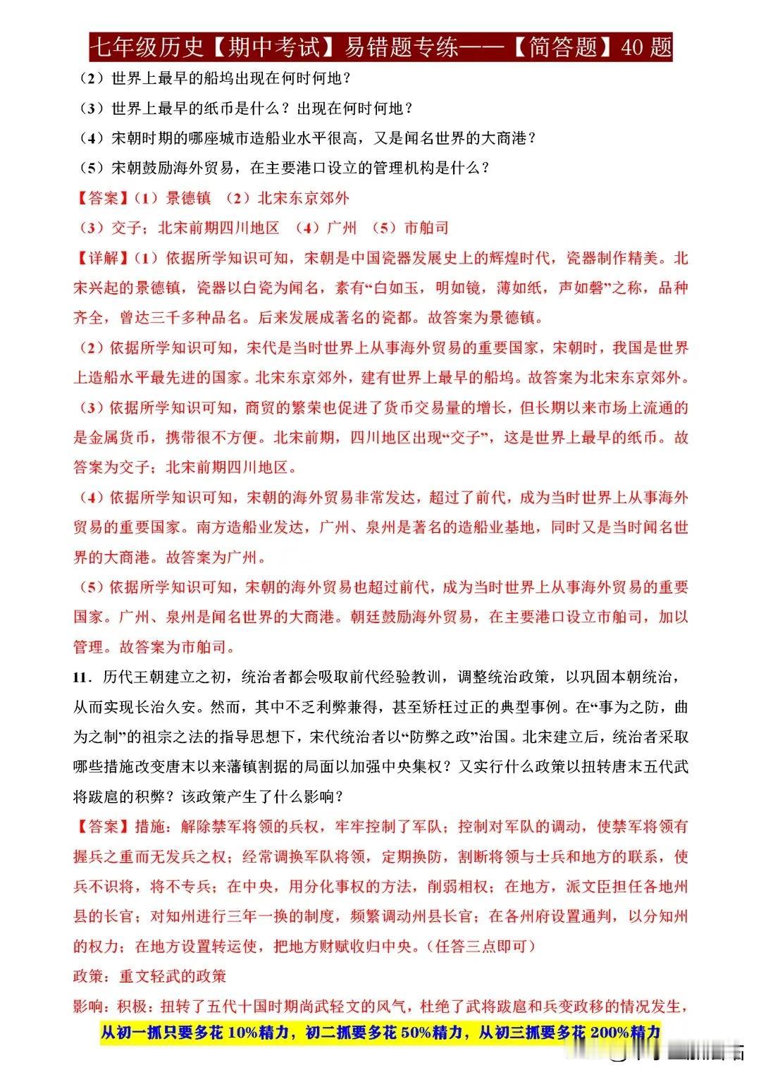 七年级历史期中考试易错题专练,历年考试扣分多的题,别再犯错了 七年级历史期中考试,易错题是复习的关键。历年考试中,学生们常常在一些细节和知识点上失分。为了避免重蹈覆辙,我们要针对这些易错题进行专项练习。通过反复做题、总结规律,加深对知识点的理解和记忆。 同时,要注重历史事件的关联性和整体性,避免孤立地记忆。在复习过程中,还可以借助图表、时间轴等工具,帮助梳理历史脉络。记住,历史不是孤立的,要将其与现实相联系,理解历史对我们今天的启示。只有这样,才能在考试中游刃有余,取得好成绩。