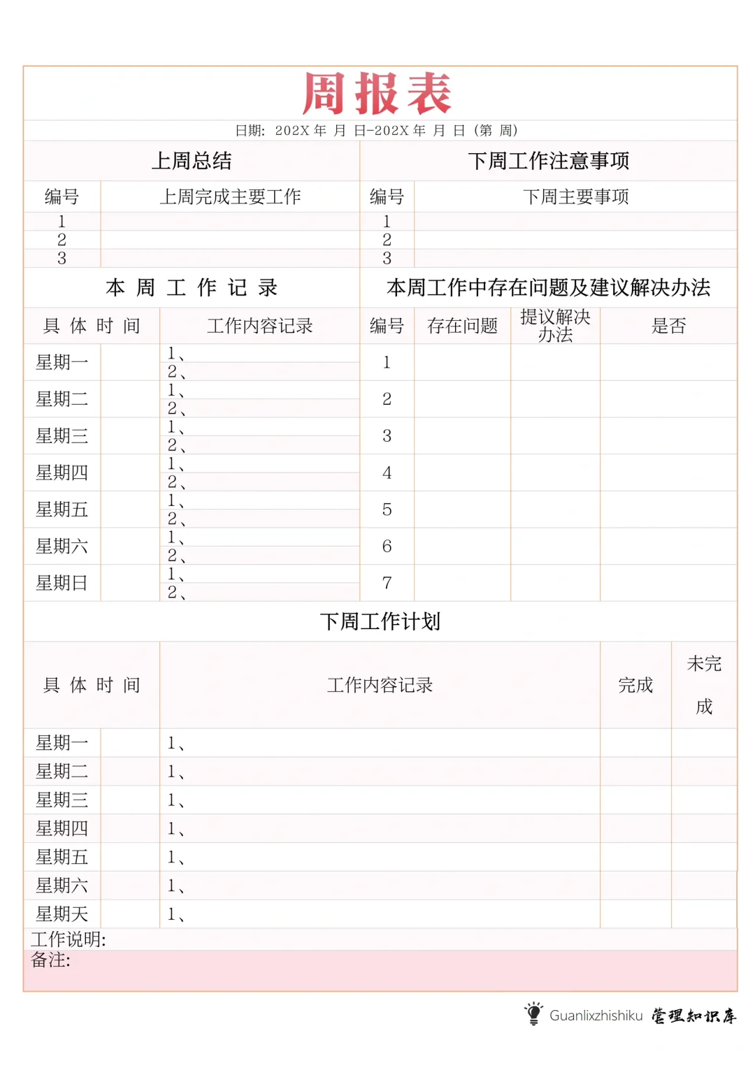‼️周工作总结计划表✍️